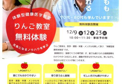 体験型健康医学教室 りんご教室無料体験 元気になるノウハウを学ぶ 対 象:どなた Read more…