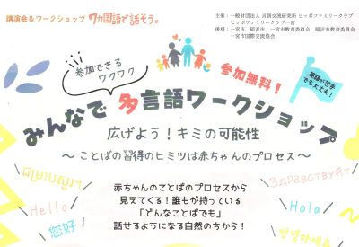 団体イベント情報 (登録団体からのお知らせ)みんなで多言語ワークショップ【ヒッポファミリークラブ一宮】 Posted on 2026-01-16 一宮市市民活動支援センター登録団体のイベント情報です。 ———————————— Read more…
