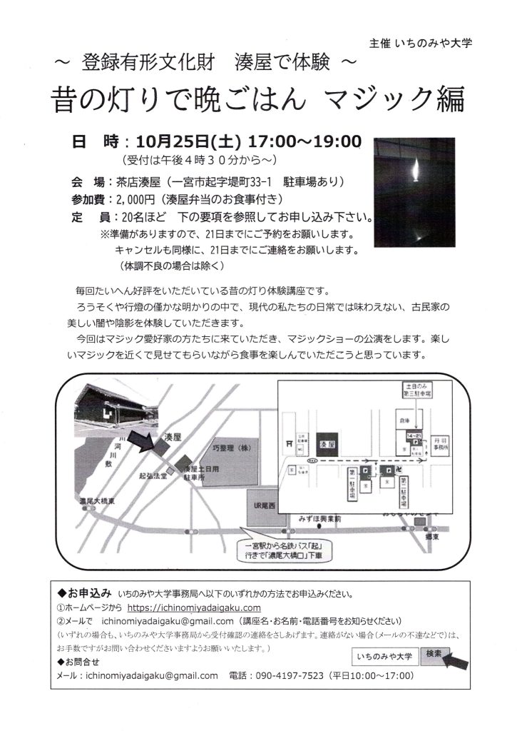 (登録団体からのお知らせ)昔の灯りで晩ごはん【いちのみや大学】