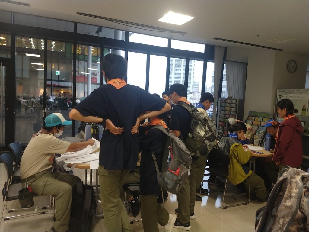 雨でもボーイスカウト一宮第5団さんは元気に活動されていました。
