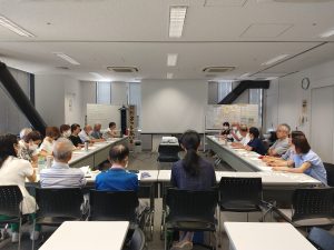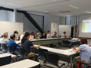 一宮市内のNPO法人代表や医療関係者、ケアマネジャーのほか、近隣市町からの参加もあり、ファシリテーターの諌山さんとセンタースタッフの安田を含め、21名が集まりました。