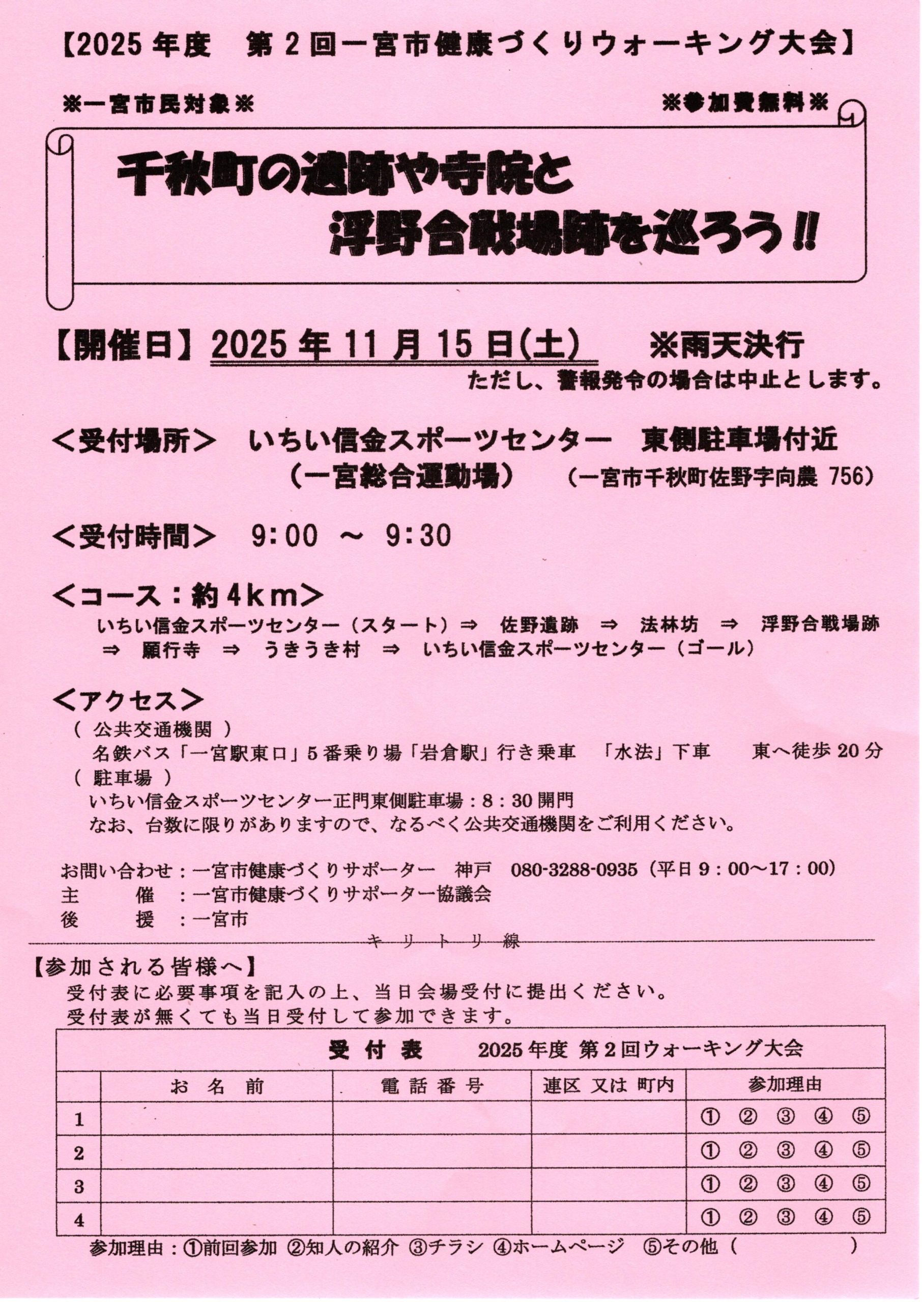 (登録団体からのお知らせ)第2回一宮市健康づくりウォーキング大会【一宮市健康づくりサポーター協議会】
