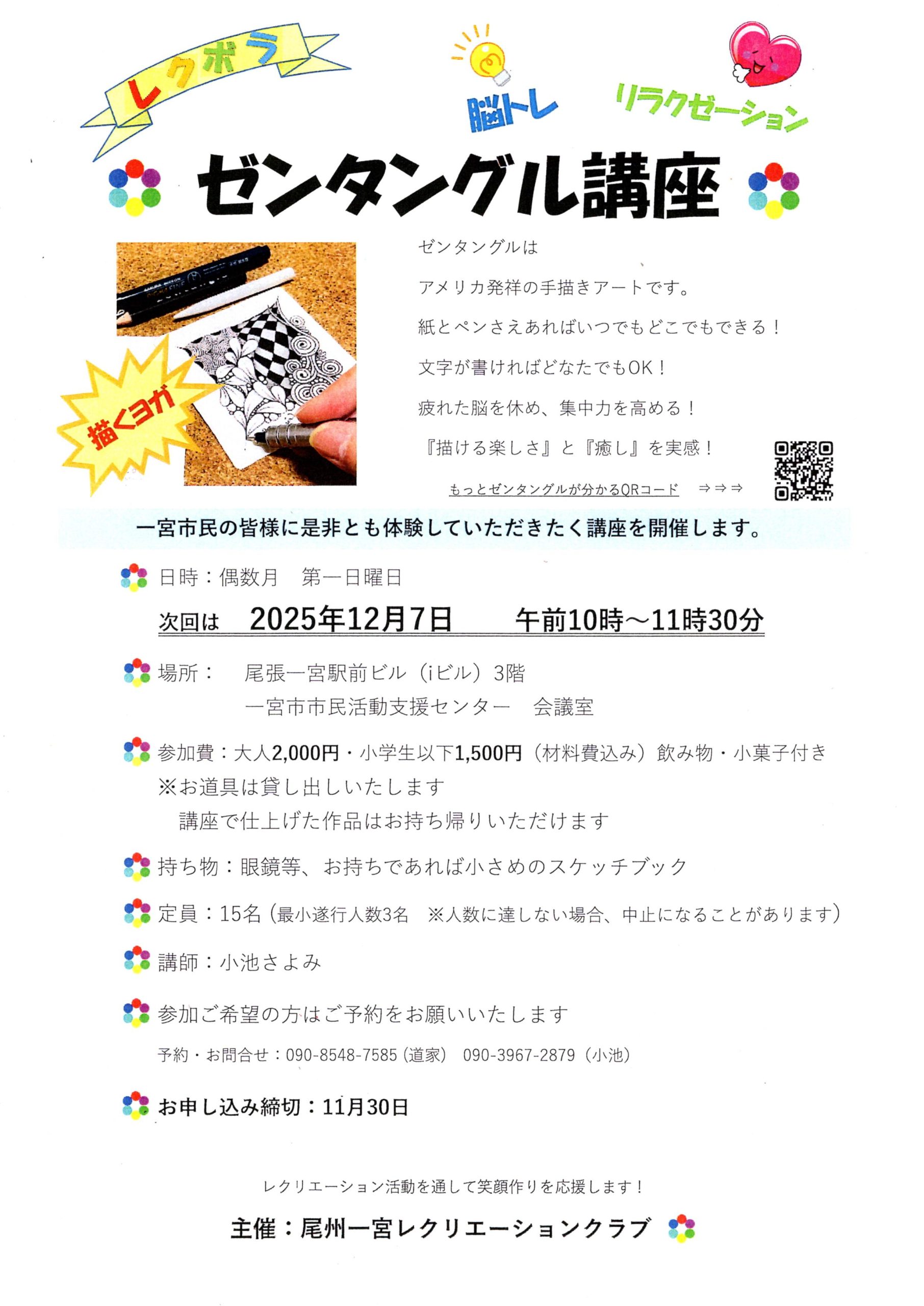 (登録団体からのお知らせ)ゼンタングル講座【尾州一宮レクリエーションクラブ】