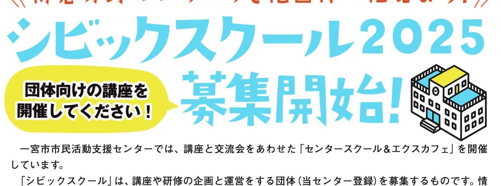 一宮市市民活動支援センターでは、講座と交流会をあわせた「センタースクール&エクスカフェ」を開催します。