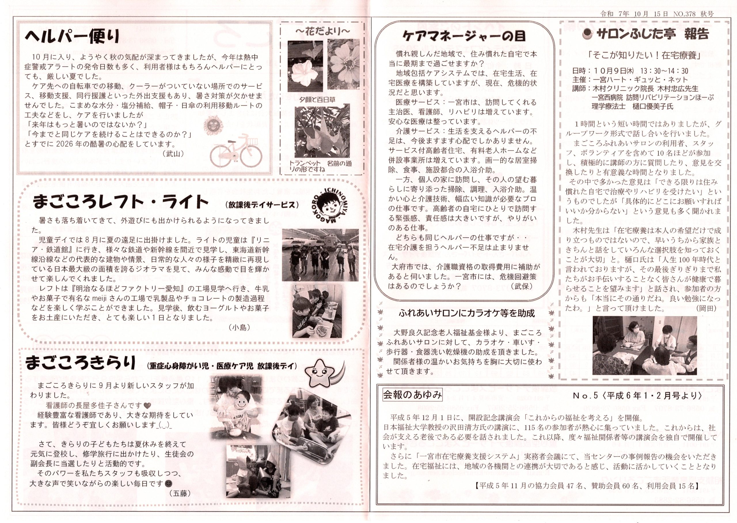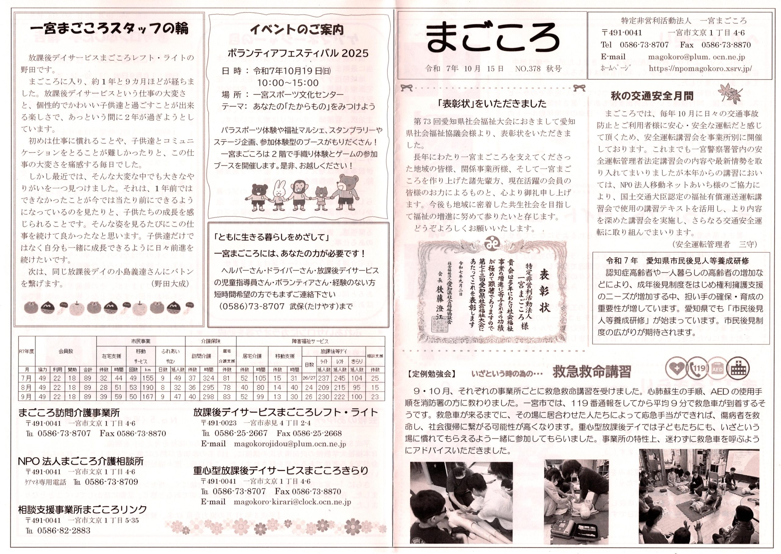 (登録団体からのお知らせ)まごころ No.378【NPO法人一宮まごころ】