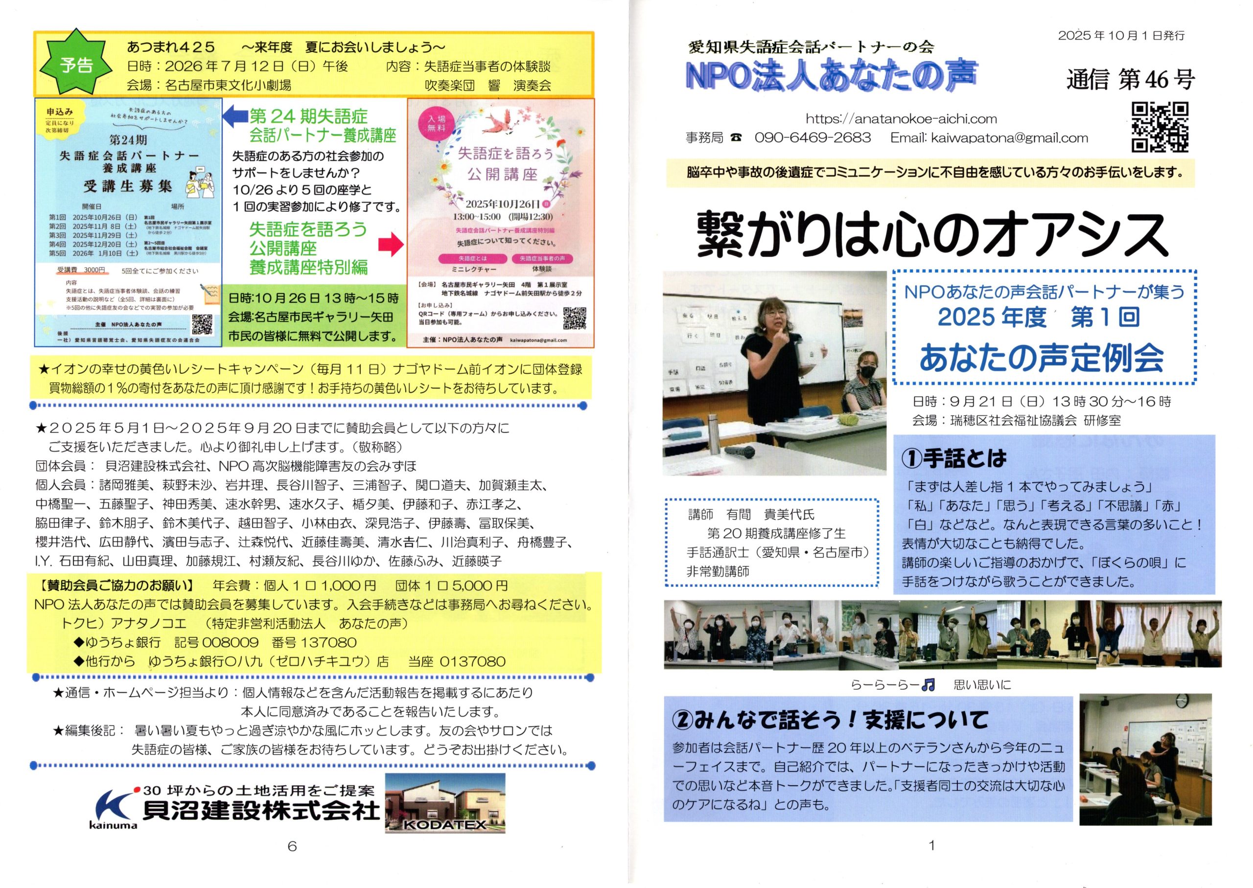 (登録団体からのお知らせ)NPO法人あなたの声通信第46号【NPO法人あなたの声】