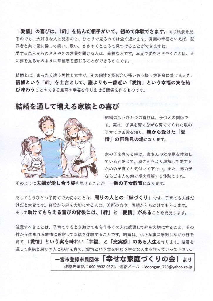 しあわせな家庭づくりの会の情報チラシが届きました。