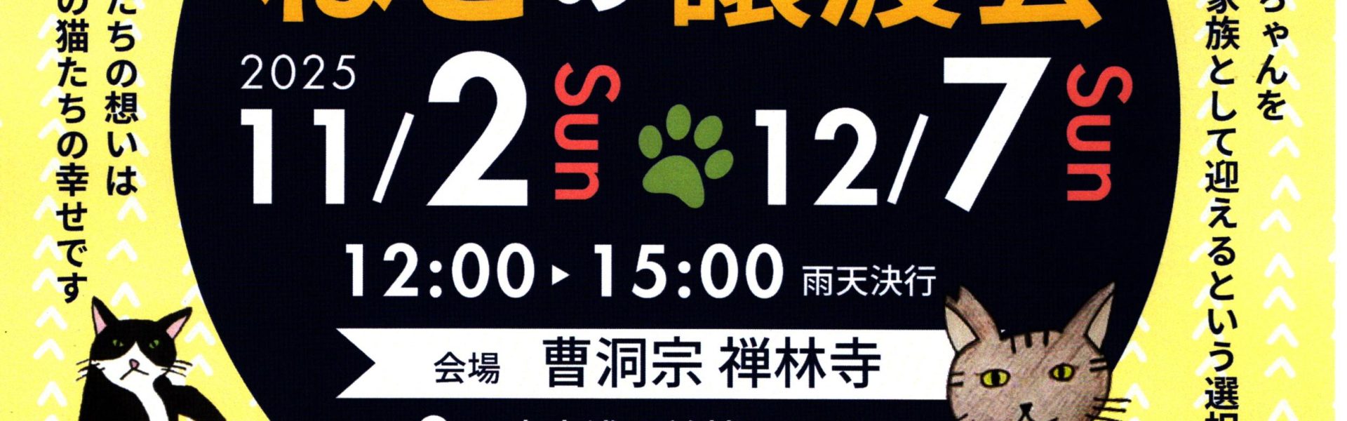日時 2025年11/2(日)12/7(日)12:00~15:00