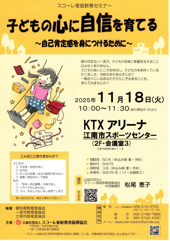 主催:公益社団法人スコーレ家庭教育振興協会 東海地区