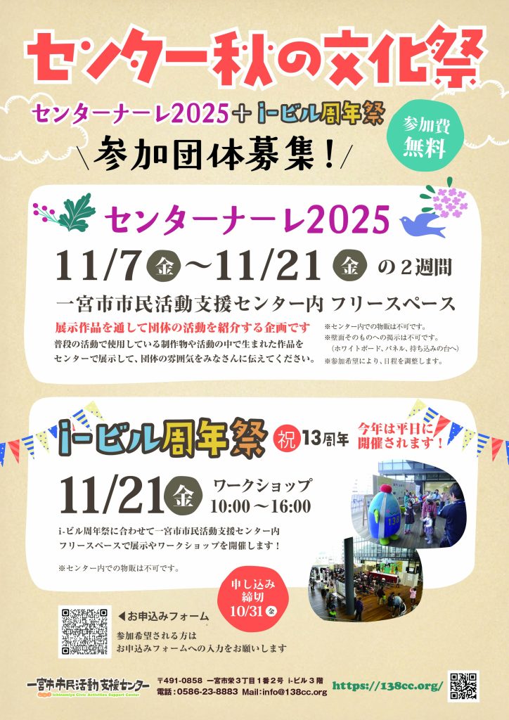 さて、来週7日から「センター秋の文化祭 センターナーレ2025」開催されます。