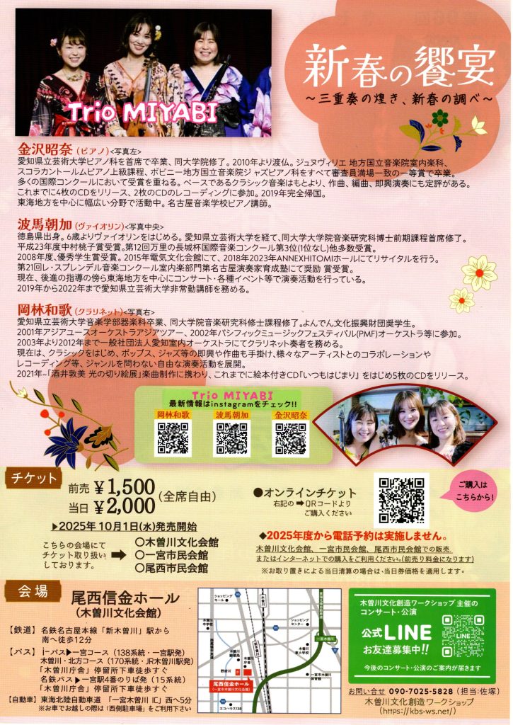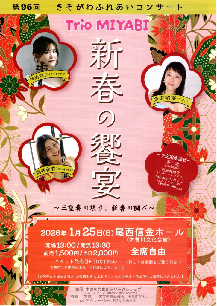 (登録団体からのお知らせ)第96回 新春の饗宴~三重奏の煌き、新春の調べ~【木曽川文化創造ワークショップ】