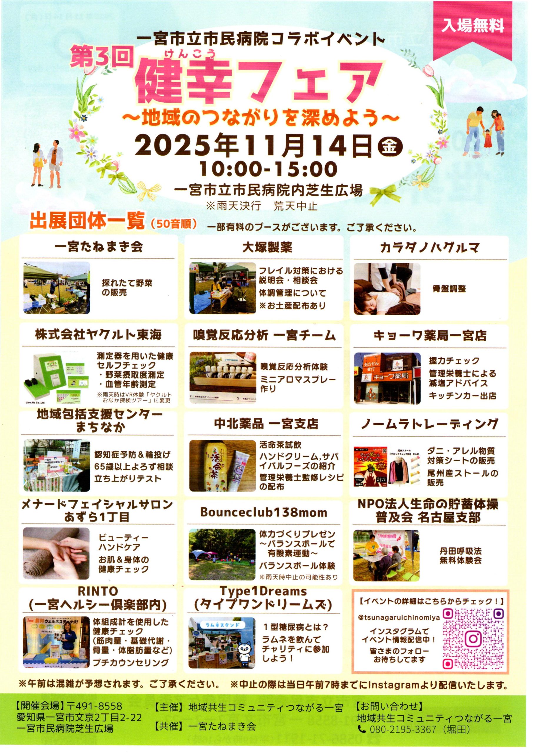 (登録団体からのお知らせ)第3回 健康フェア~地域のつながりを深めよう~【一宮たねまき会】