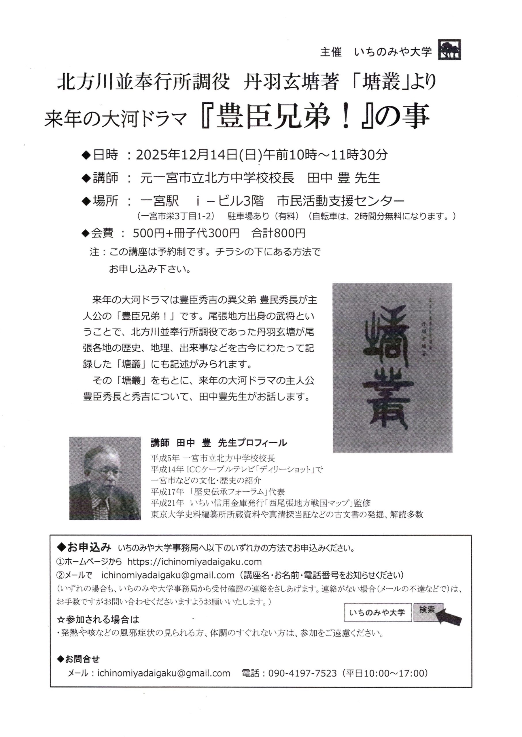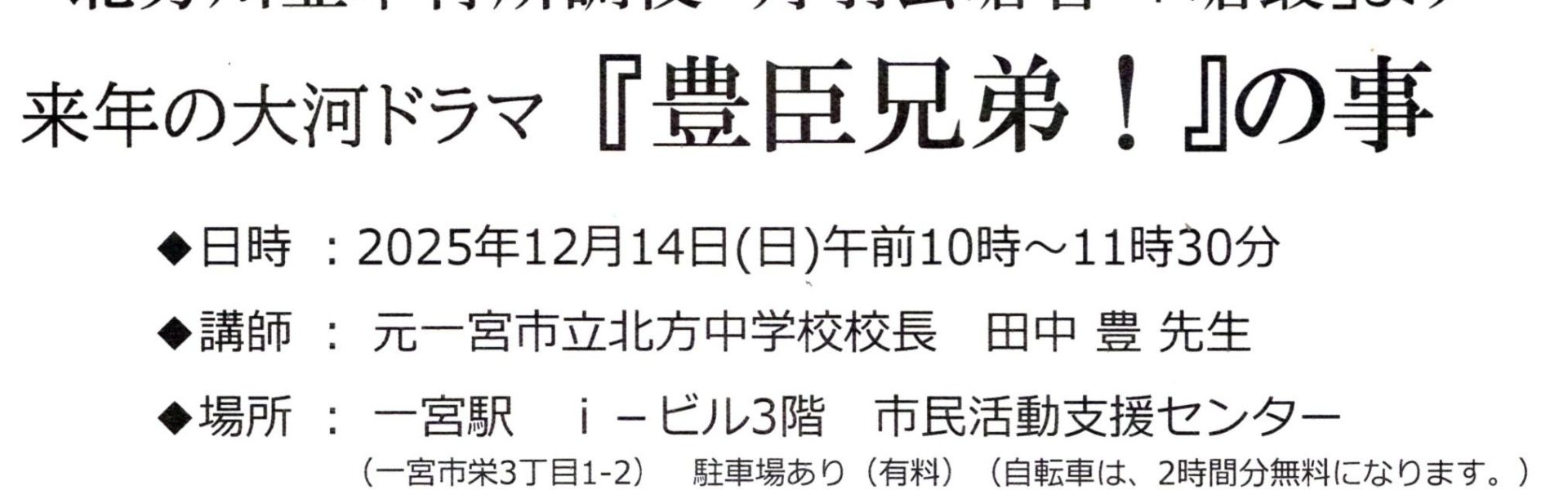 (登録団体からのお知らせ)来年の大河ドラマ『豊臣兄弟』の事【いちのみや大学】