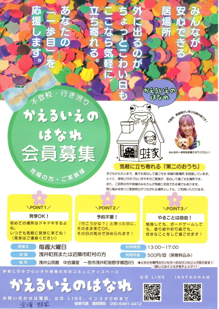 (登録団体からのお知らせ)かえるのいえのはなれ会員募集【蛙家】