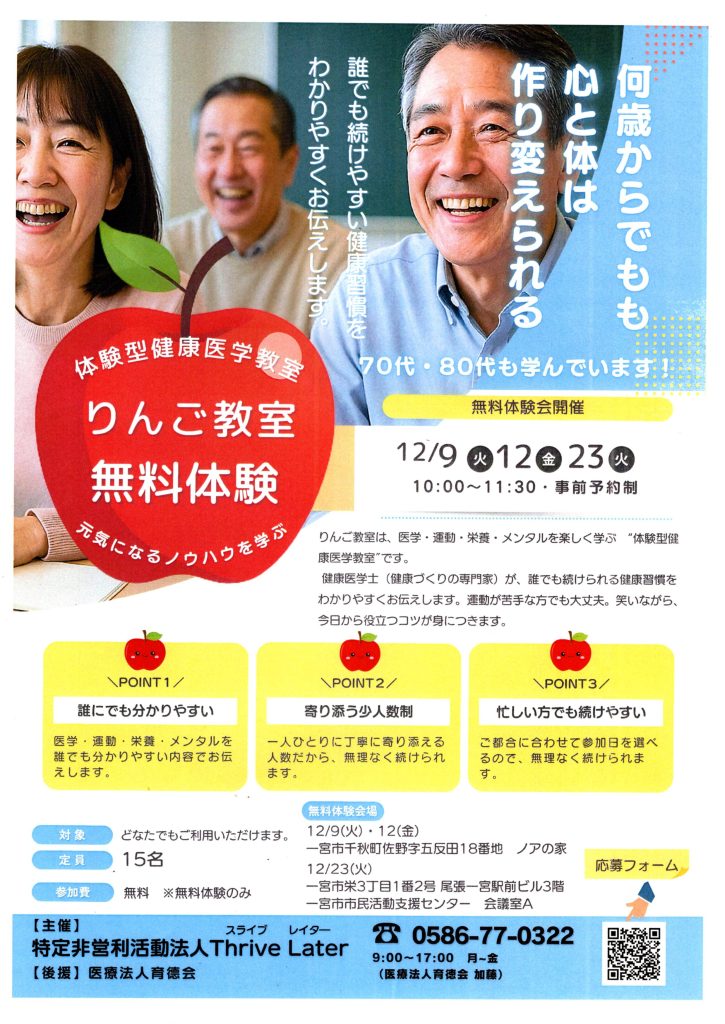 (登録団体からのお知らせ)りんご教室無料体験【特定非営利活動法人 Thrive Later】