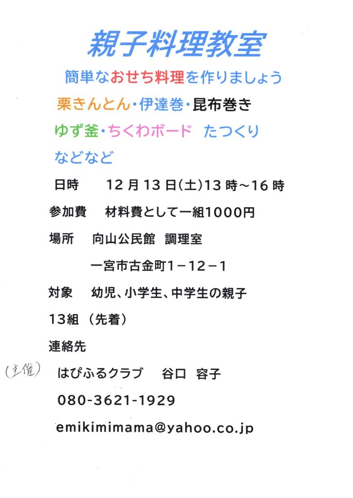 (登録団体からのお知らせ)親子料理教室【はぴふるクラブ】