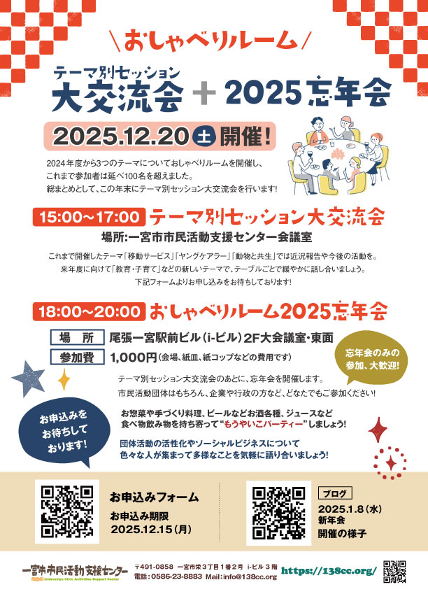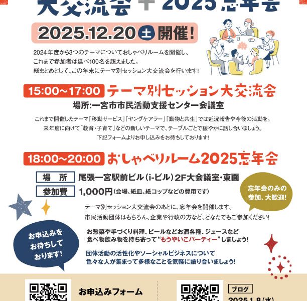 おしゃべりルーム テーマ別セッション大交流会+2025忘年会