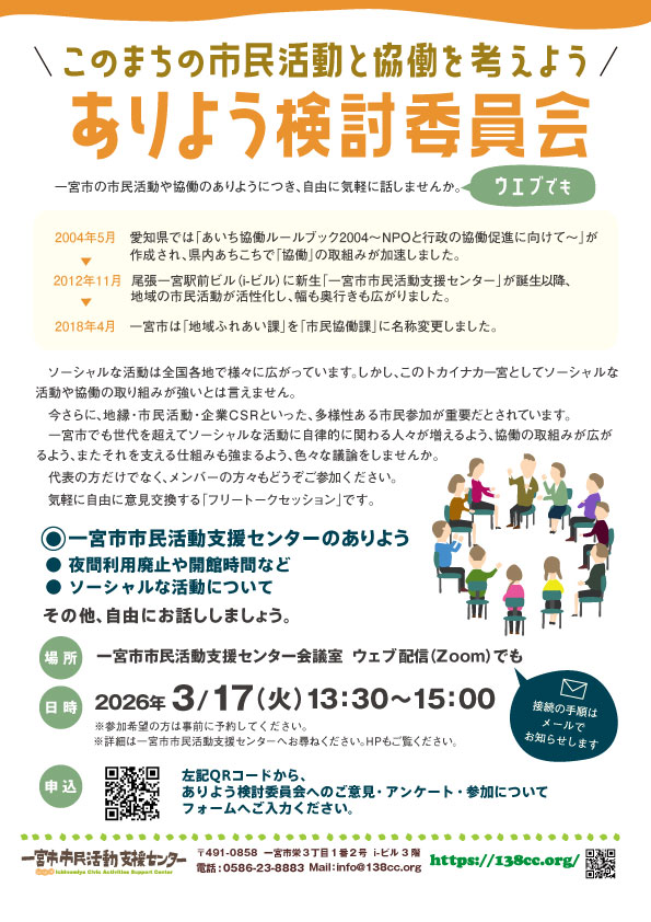 一宮市の市民活動や協働のありようについて、自由に気軽に話しませんか。(ウェブでも)