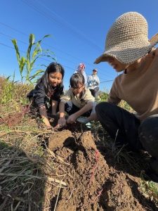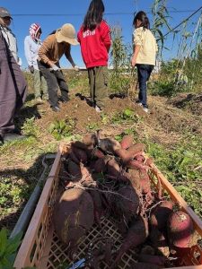 団体が管理している畑は現在2つ。この日は1つ目の畑を訪問。こちらの畑は20年間使われておらず、土づくりからスタートして今年で2年目。訪問した日は6月に植えたサツマイモの収穫と、玉ねぎ、豆の植え付けでした。とても2年前から始めたとは思えないほど立派な芋が収穫できました。
