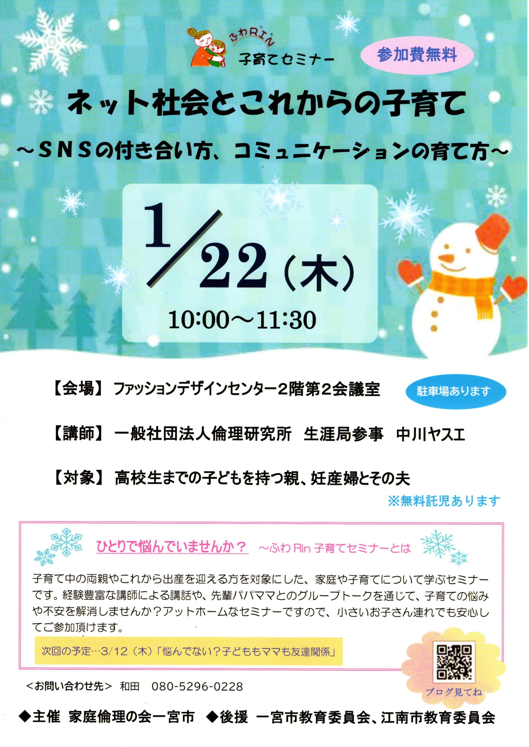 (登録団体からのお知らせ)ネット社会とこれからの子育て【家庭倫理の会一宮市】