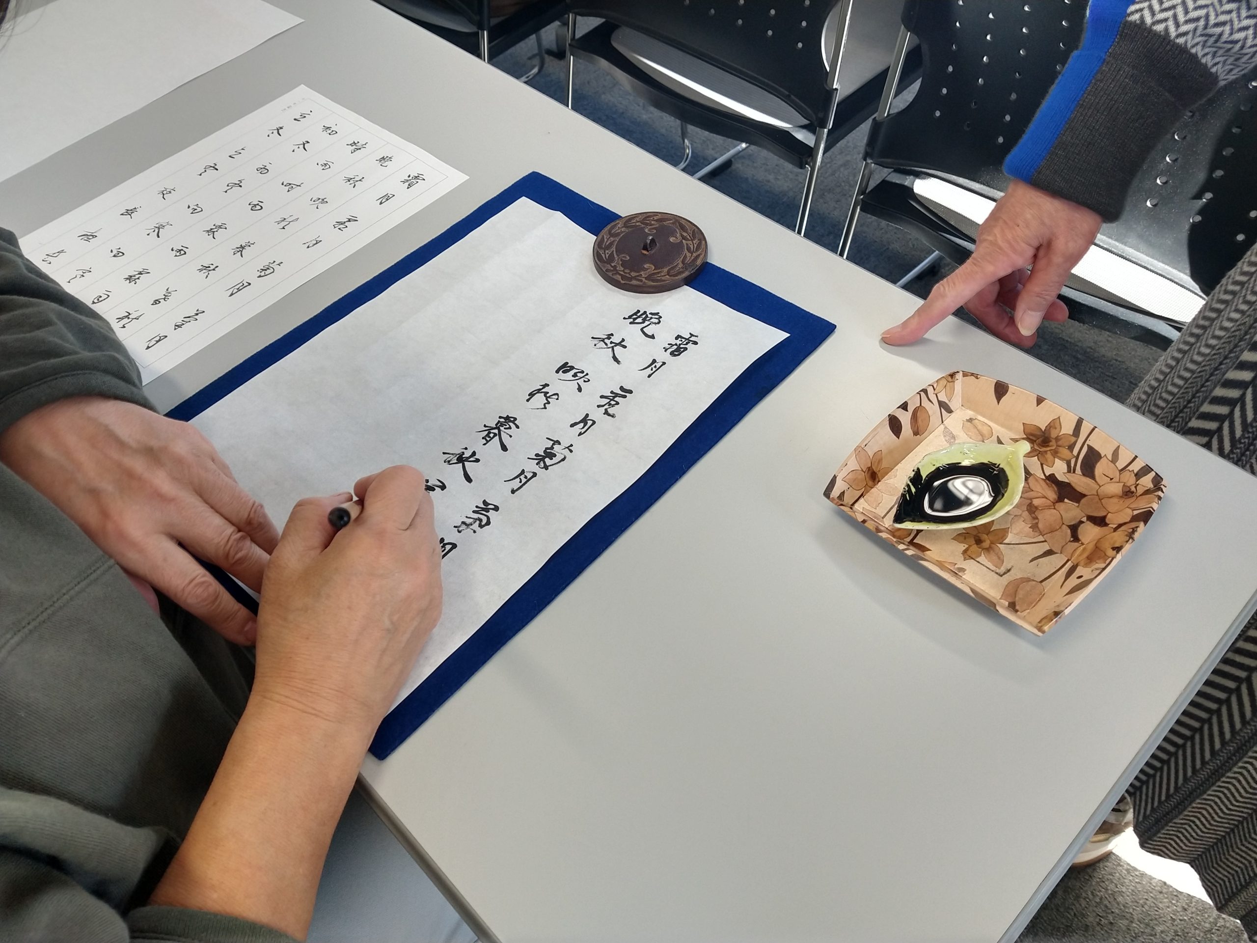 お手本を見ながら、筆を動かし美文字を書かれていました。