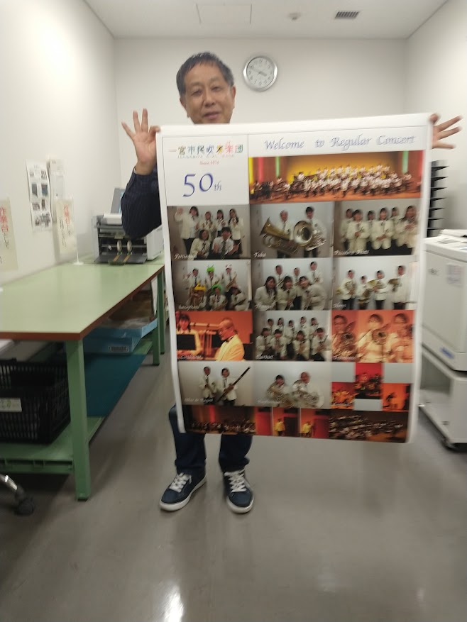 さて、今日は一宮市民吹奏楽団さんが依頼していた大判印刷を引き取りに来館しました。