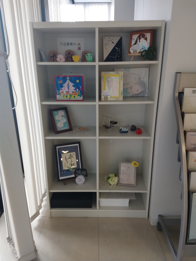 市民活動支援センターには、登録団体の皆様からお預かりした作品を展示するスペースがあります。