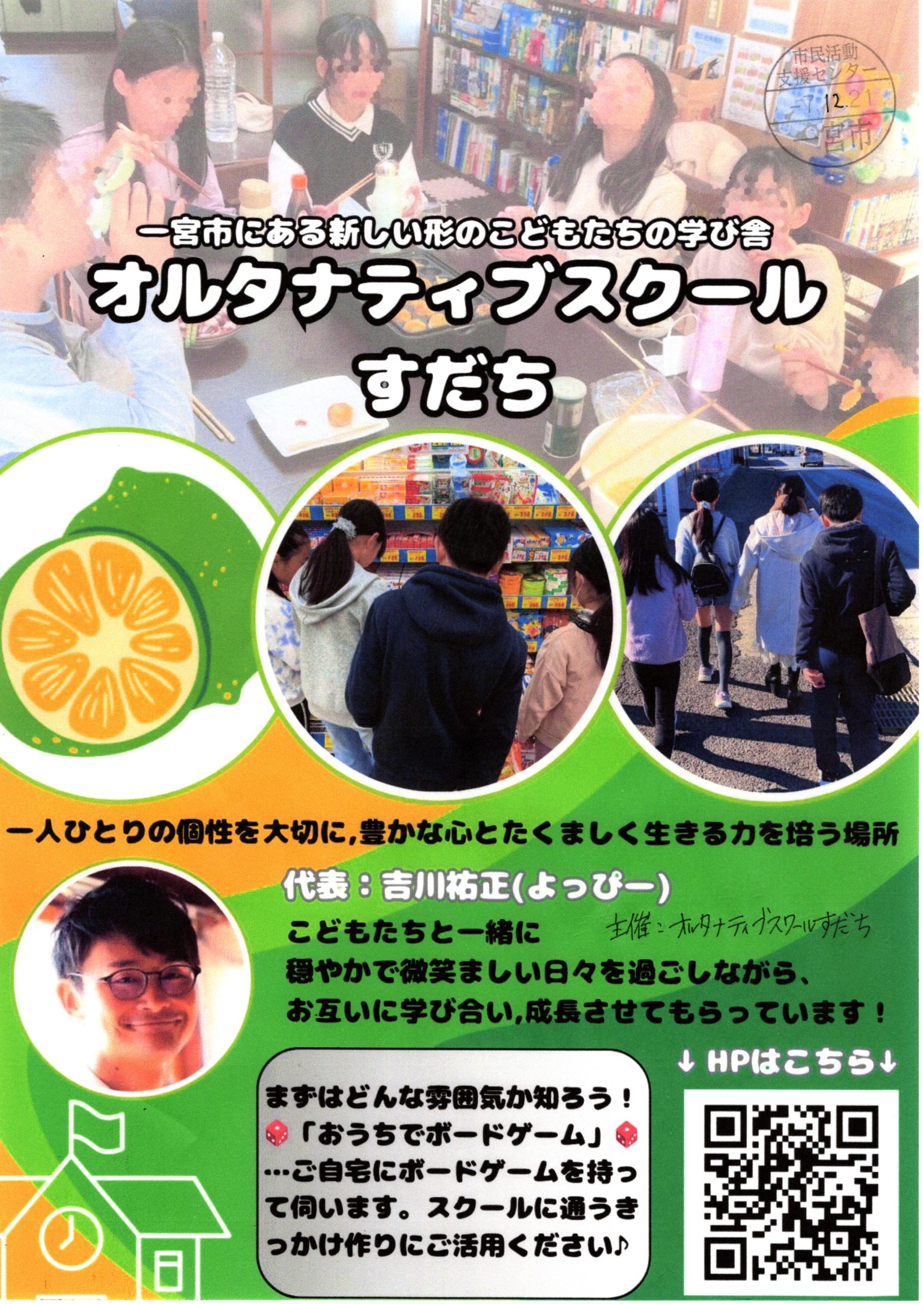(登録団体からのお知らせ)一宮市にある新しい形のこどもたちの学び舎【オルタナティブスクールすだち】