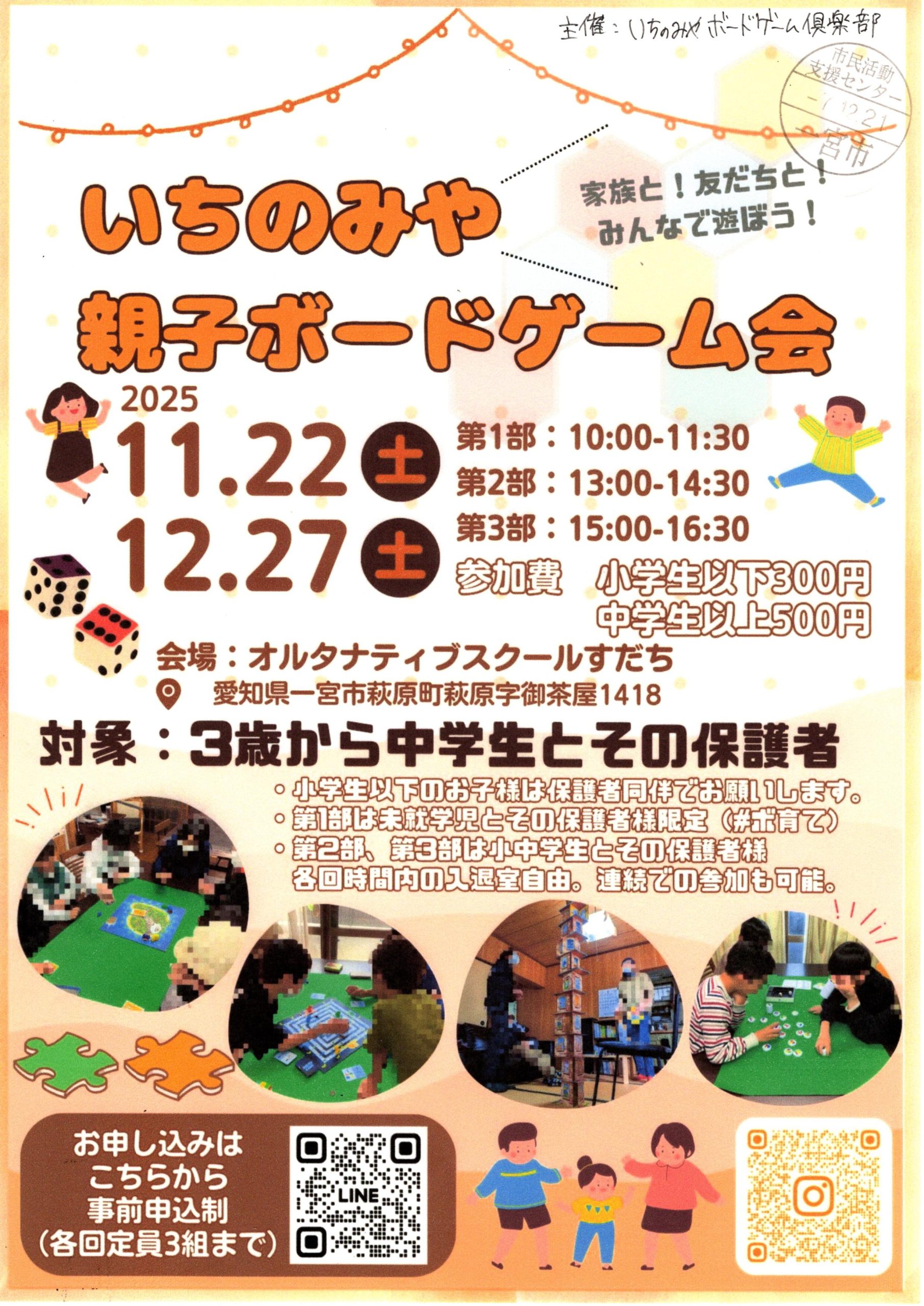 (登録団体からのお知らせ)いちのみや親子ボードゲーム会 12.27(土)【いちのみやボードゲーム倶楽部】