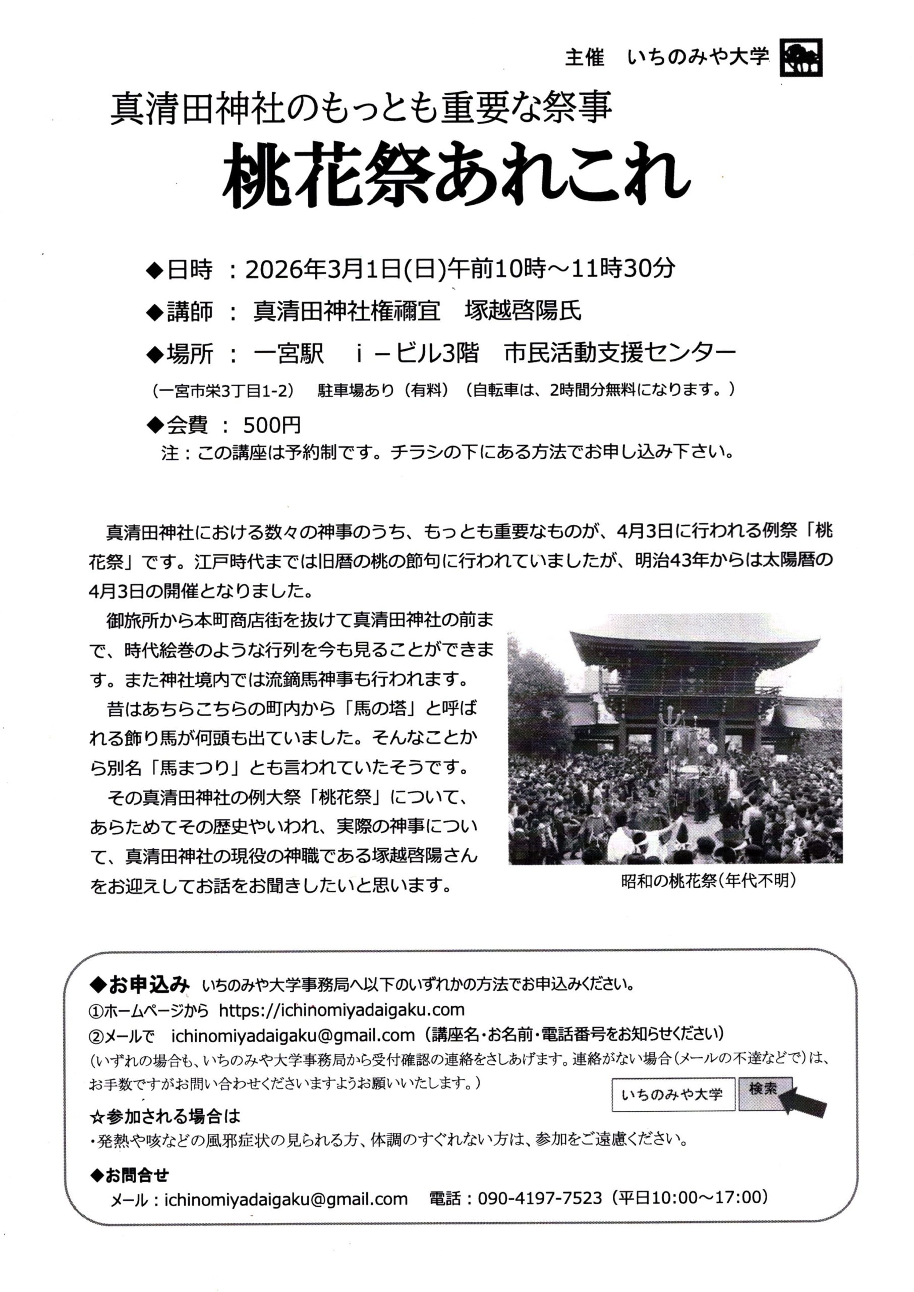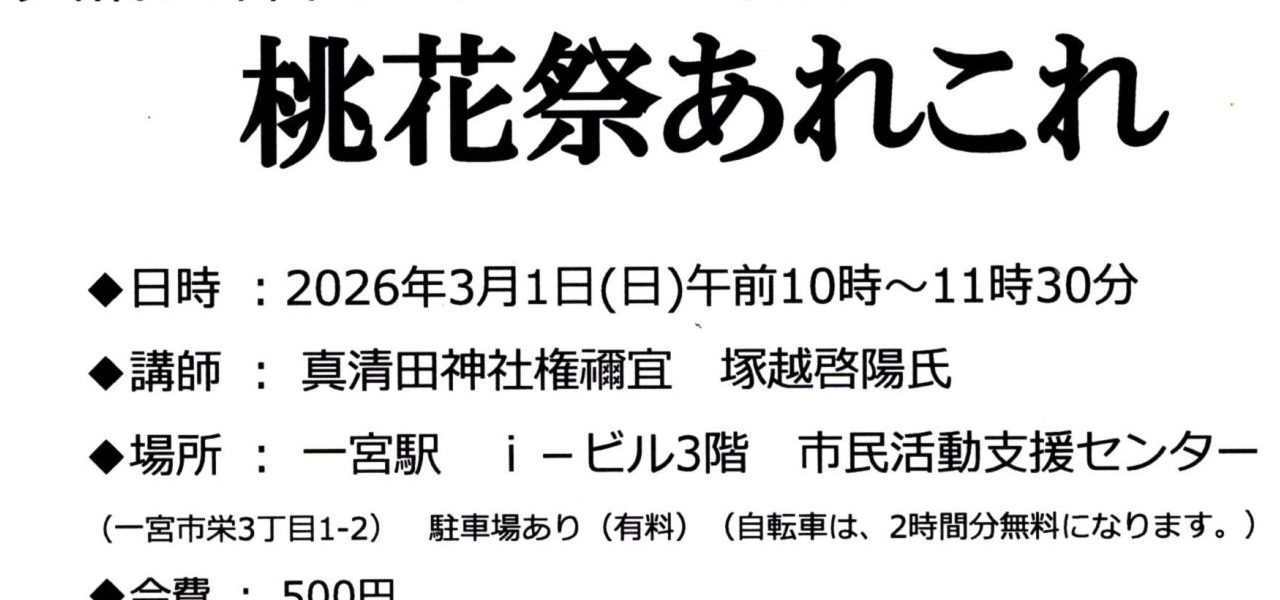 (登録団体からのお知らせ)桃花祭あれこれ【いちのみや大学】