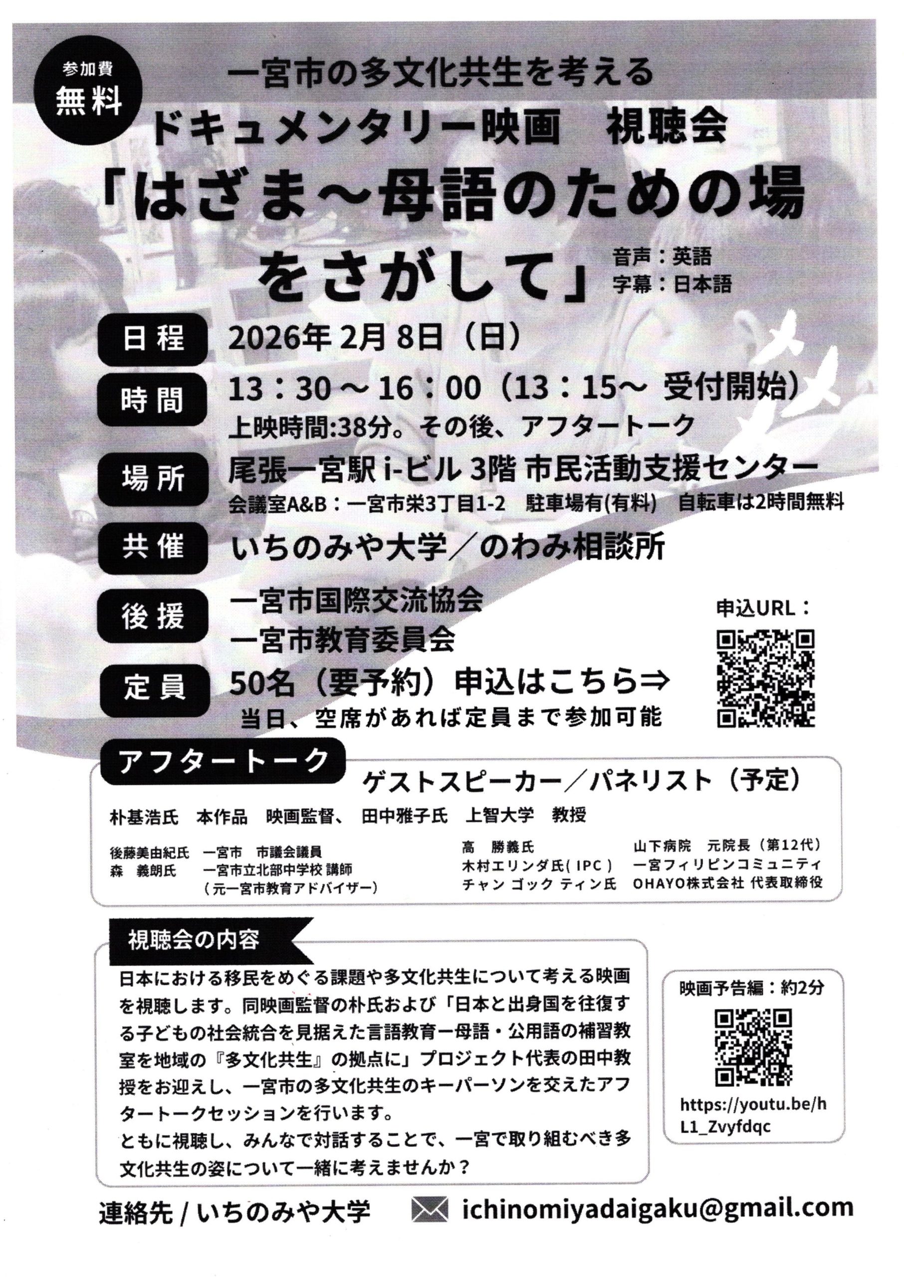 (登録団体からのお知らせ)はざま~母語のための場をさがして【いちのみや大学】