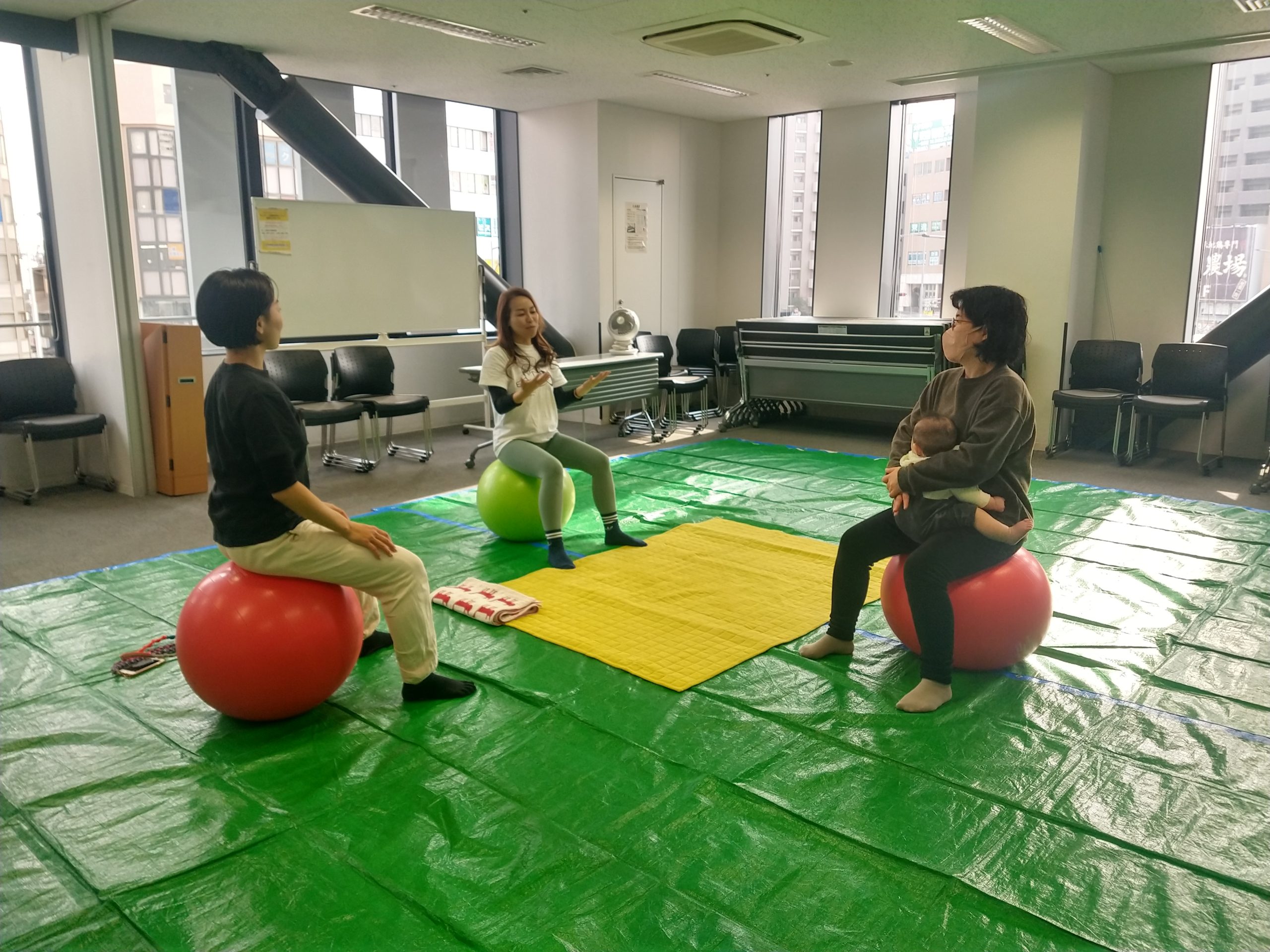 今日の参加者は1名だけでしたが、赤ちゃんと一緒にバランスボールで弾んでいました。