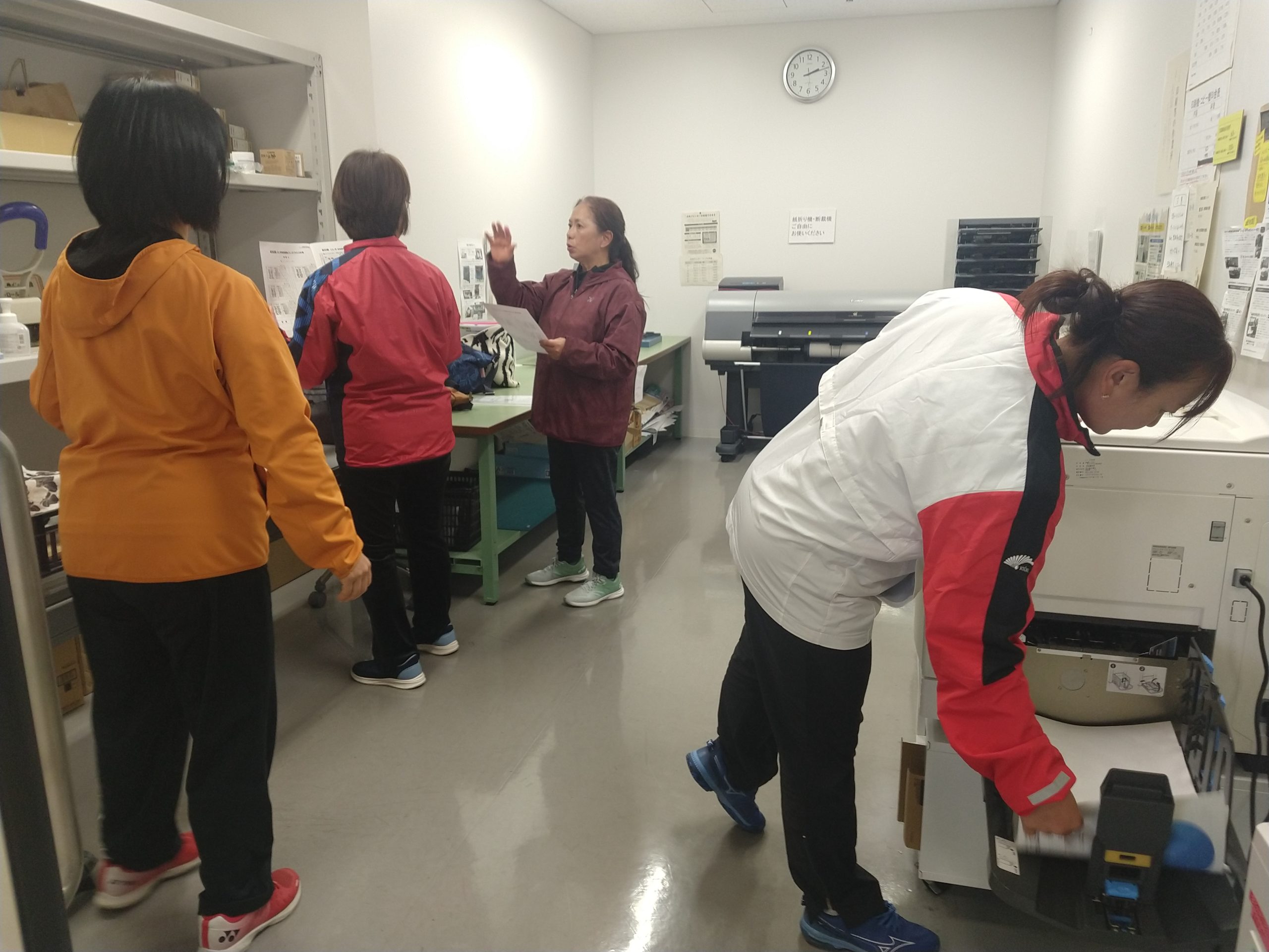 作業室では、午前中に日本女子テニス連盟 愛知支部さんが、午後から一宮ソフトテニス協会さんが大会のプログラムなどを印刷されていました。