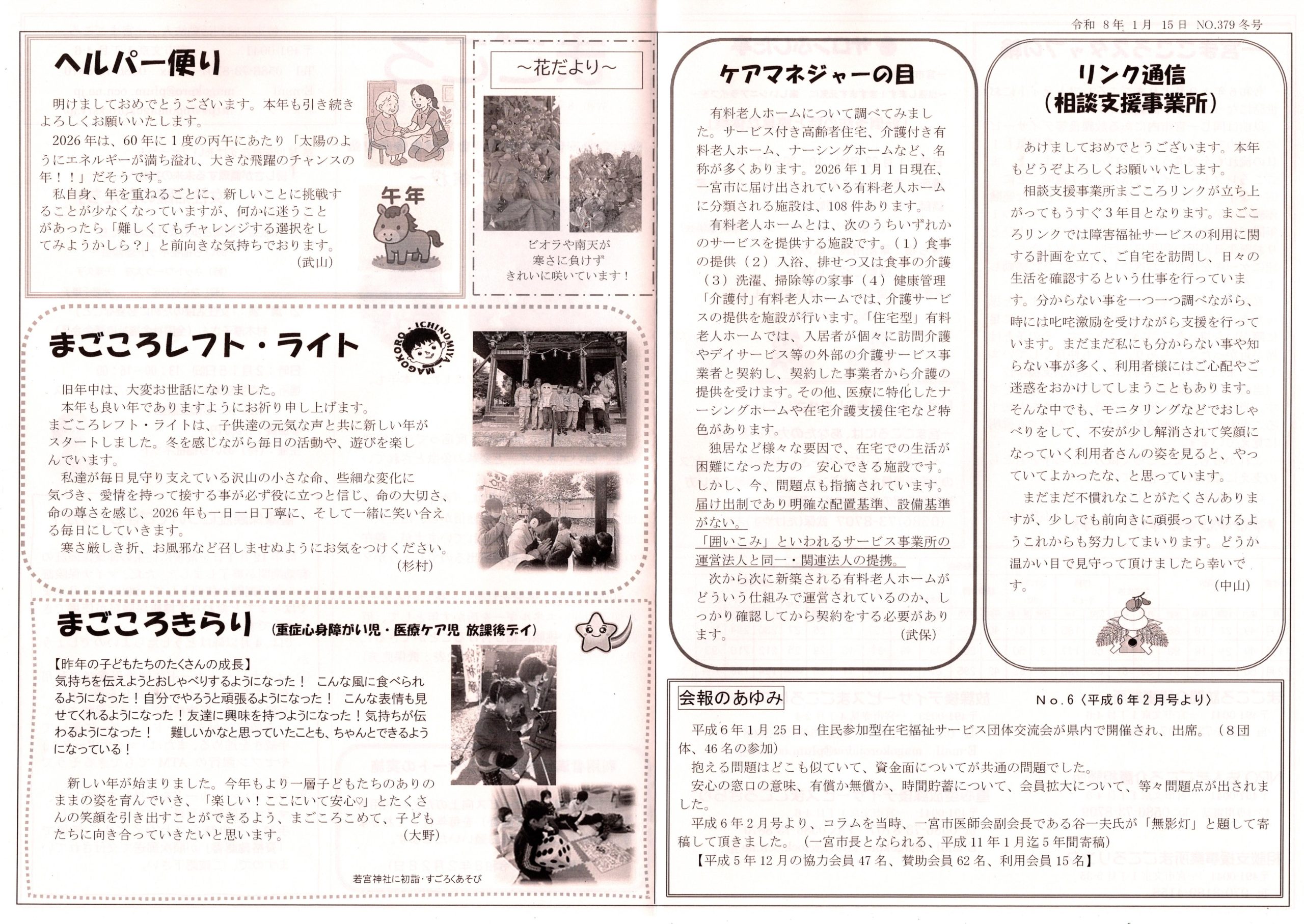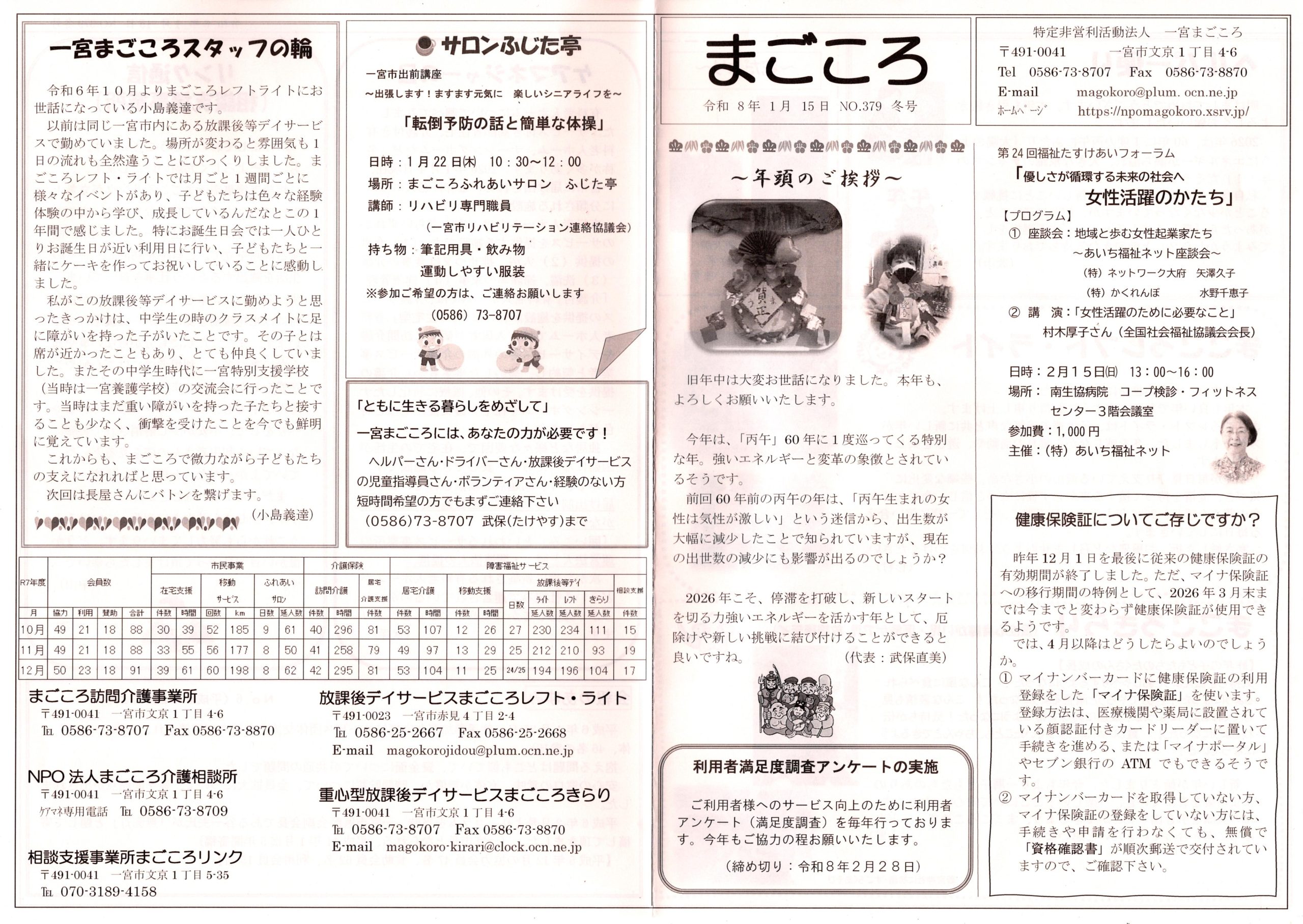 NPO法人一宮まごころ「まごころ No.379 冬号」が届きました。