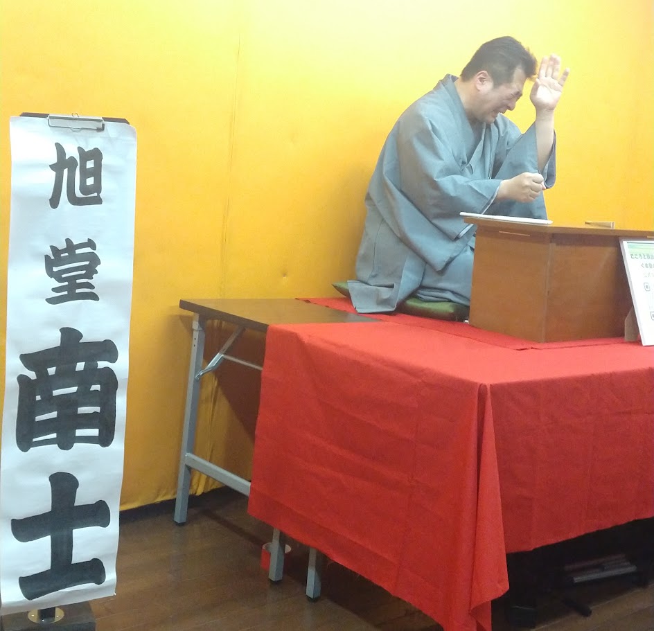 5年前(2020年)に講談の教室生として師匠の旭堂南左衛門に習い始め、昨年(2025年)4月に旭堂南士を拝命しました。