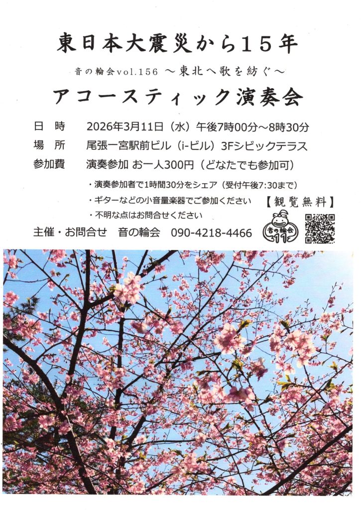 (登録団体からのお知らせ)東日本大震災から15年 アコースティック演奏会【音の輪会】