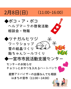2月8日(日)まちの宮市もうやいこブース出展団体が決定!