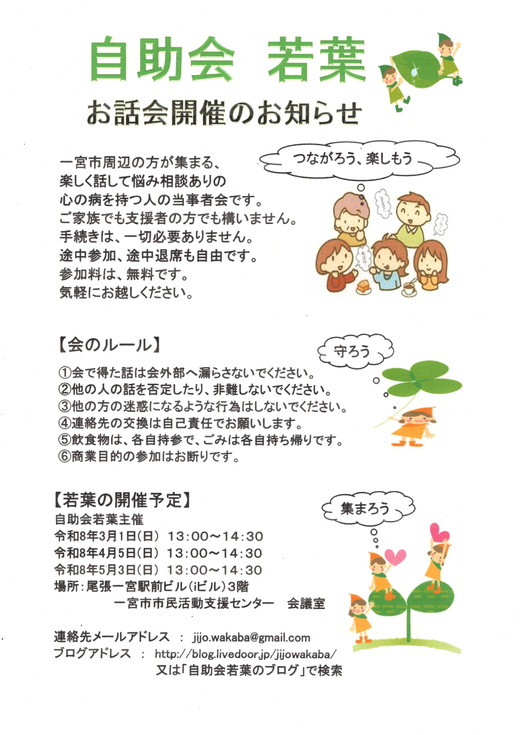 (登録団体からのお知らせ)お話会開催のお知らせ【自助会若葉】