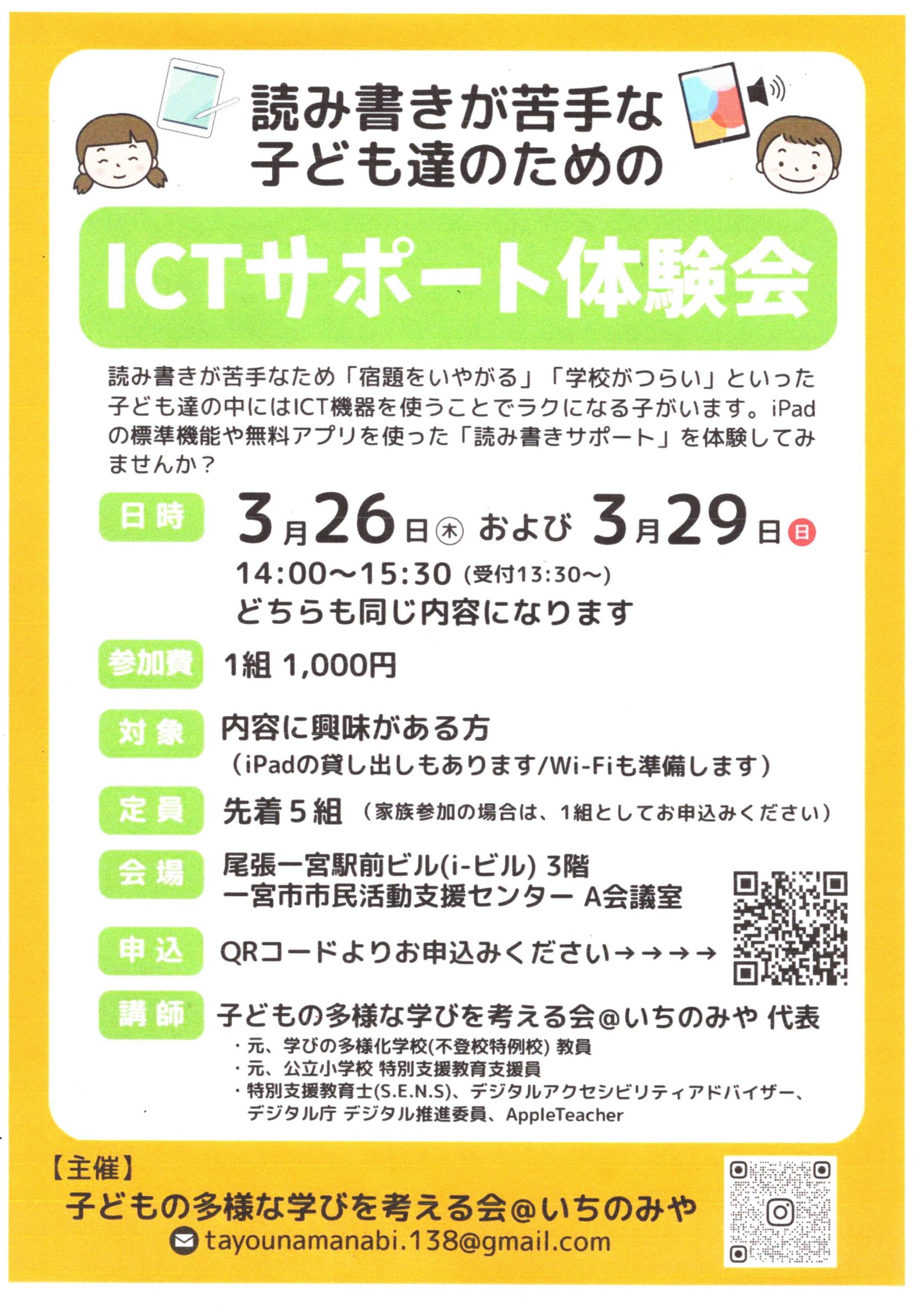 (登録団体からのお知らせ)ICTサポート体験会【子どもの多様な学びを考える会@いちのみや】