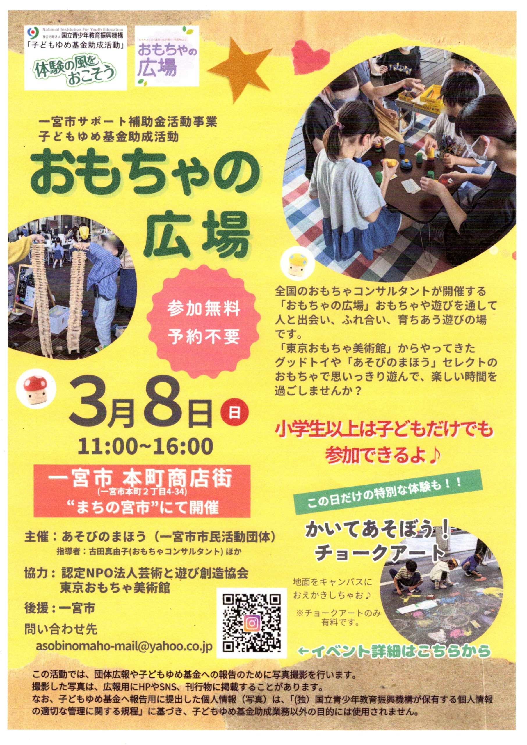 (登録団体からのお知らせ)おもちゃの広場 3月8日(日)開催【あそびのまほう】