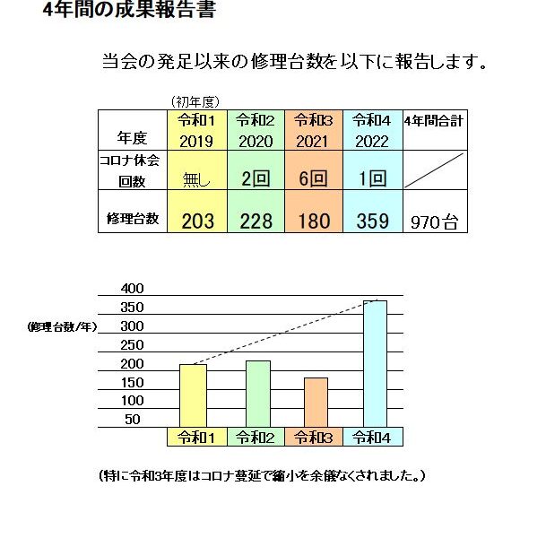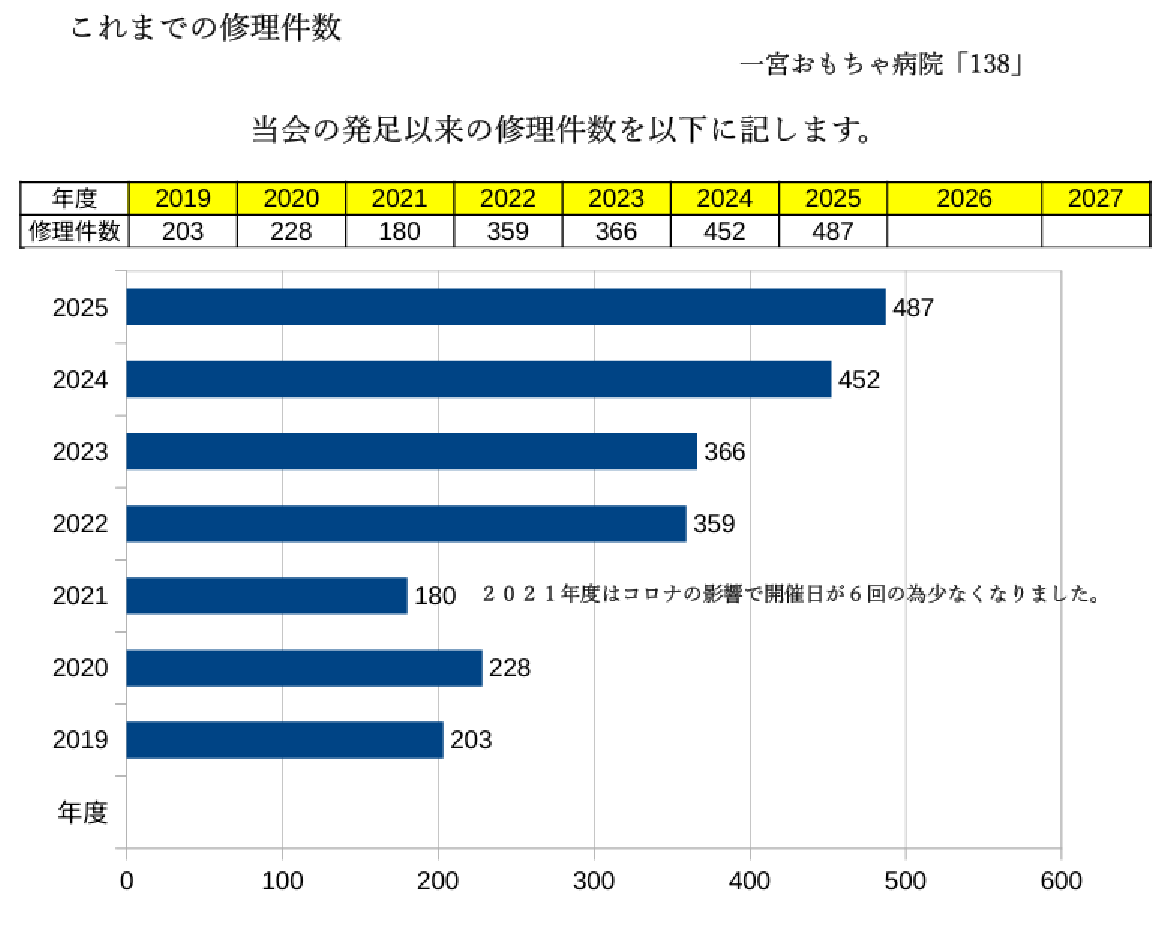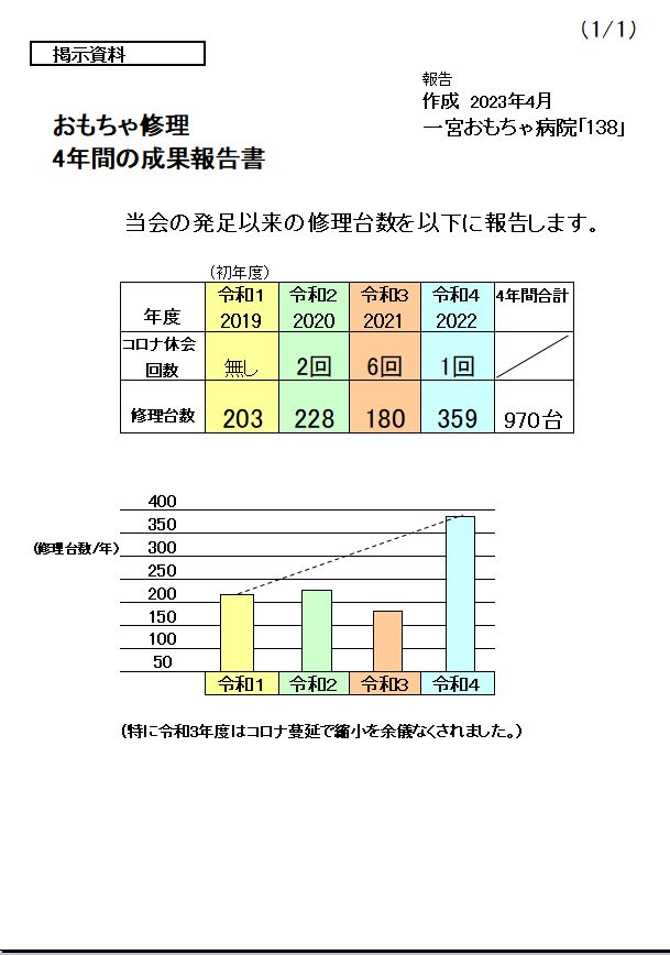 (登録団体からのお知らせ)開院から4年修理実績の報告です【一宮おもちゃ病院「138」】