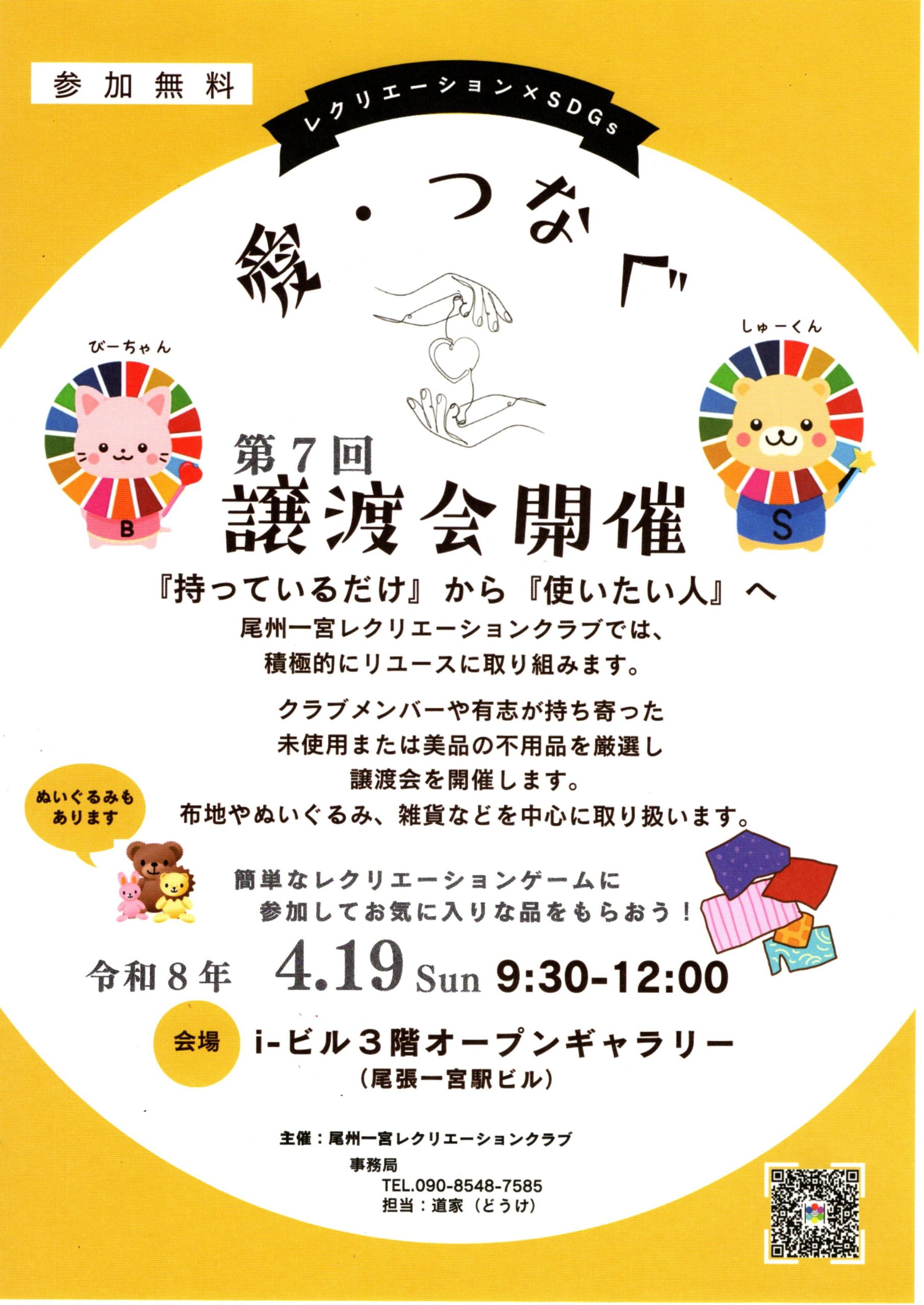 センター登録団体、尾州一宮レクリエーションクラブさんの「譲渡会」が開催されました。