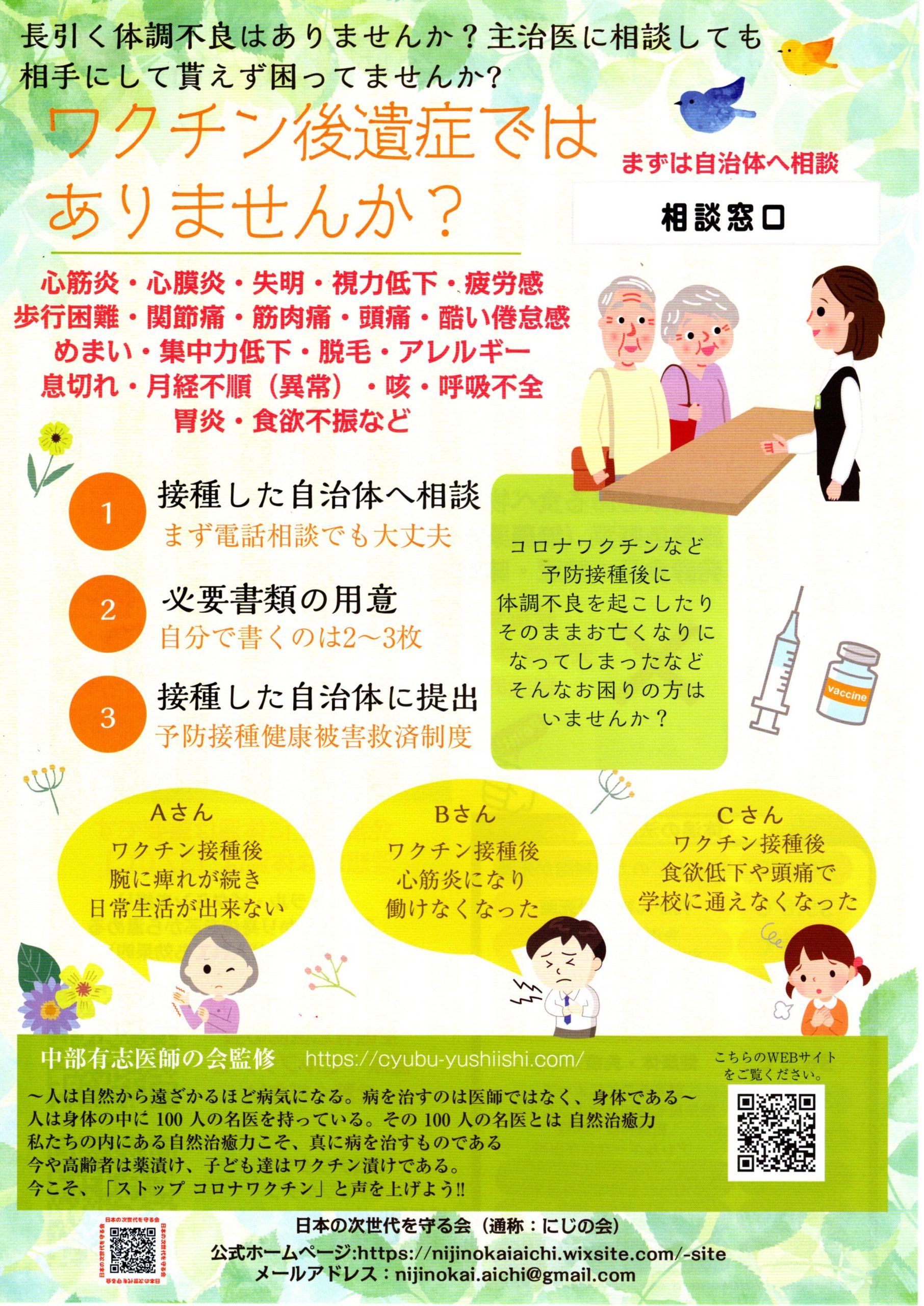 (登録団体からのお知らせ)ワクチン後遺症ではありませんか【日本の次世代を守る会】