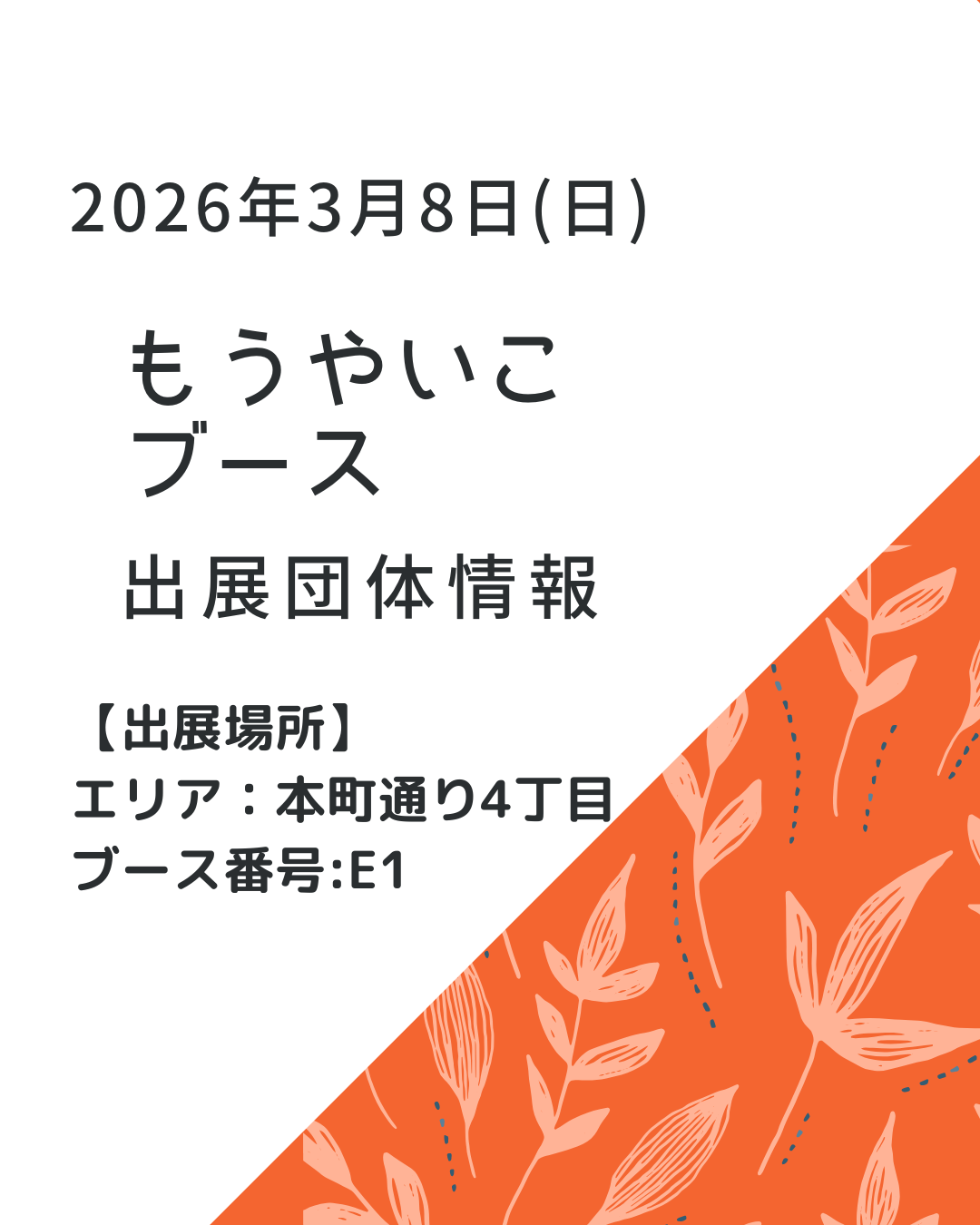 2026年3月8日(日)開催の第49回まちの宮市で出展する「もうやいこブース11」の出展団体が決定!