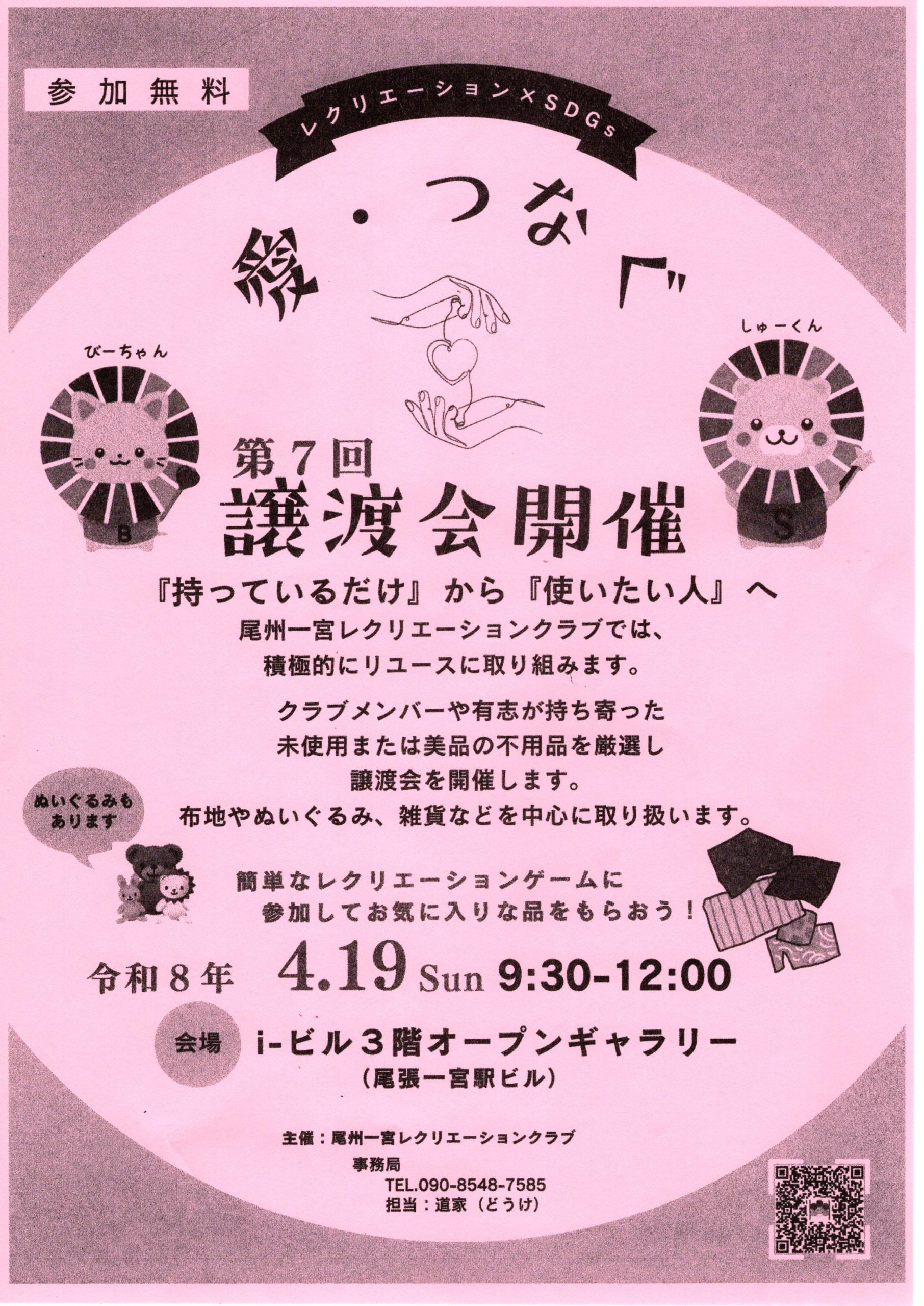 (登録団体からのお知らせ) 第7回 譲渡会開催【尾州一宮レクリエーションクラブ】