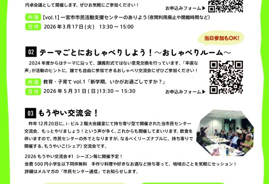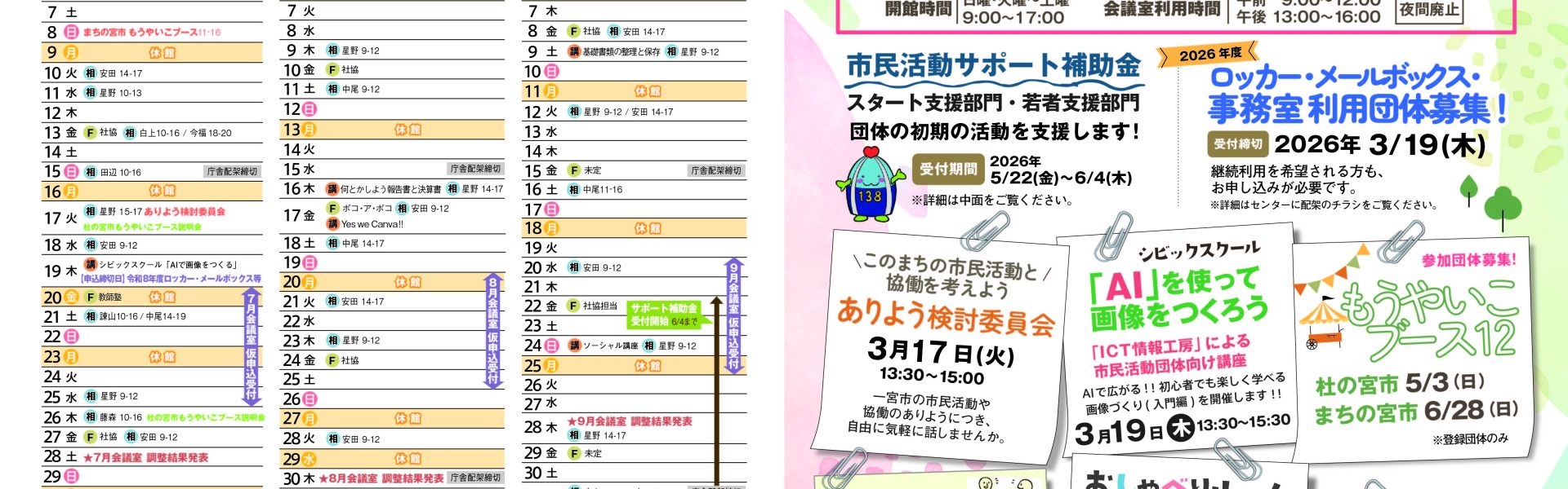 ※詳しくは別紙「2026 一宮市市民活動支援センターは、こうなります!」をご確認ください。