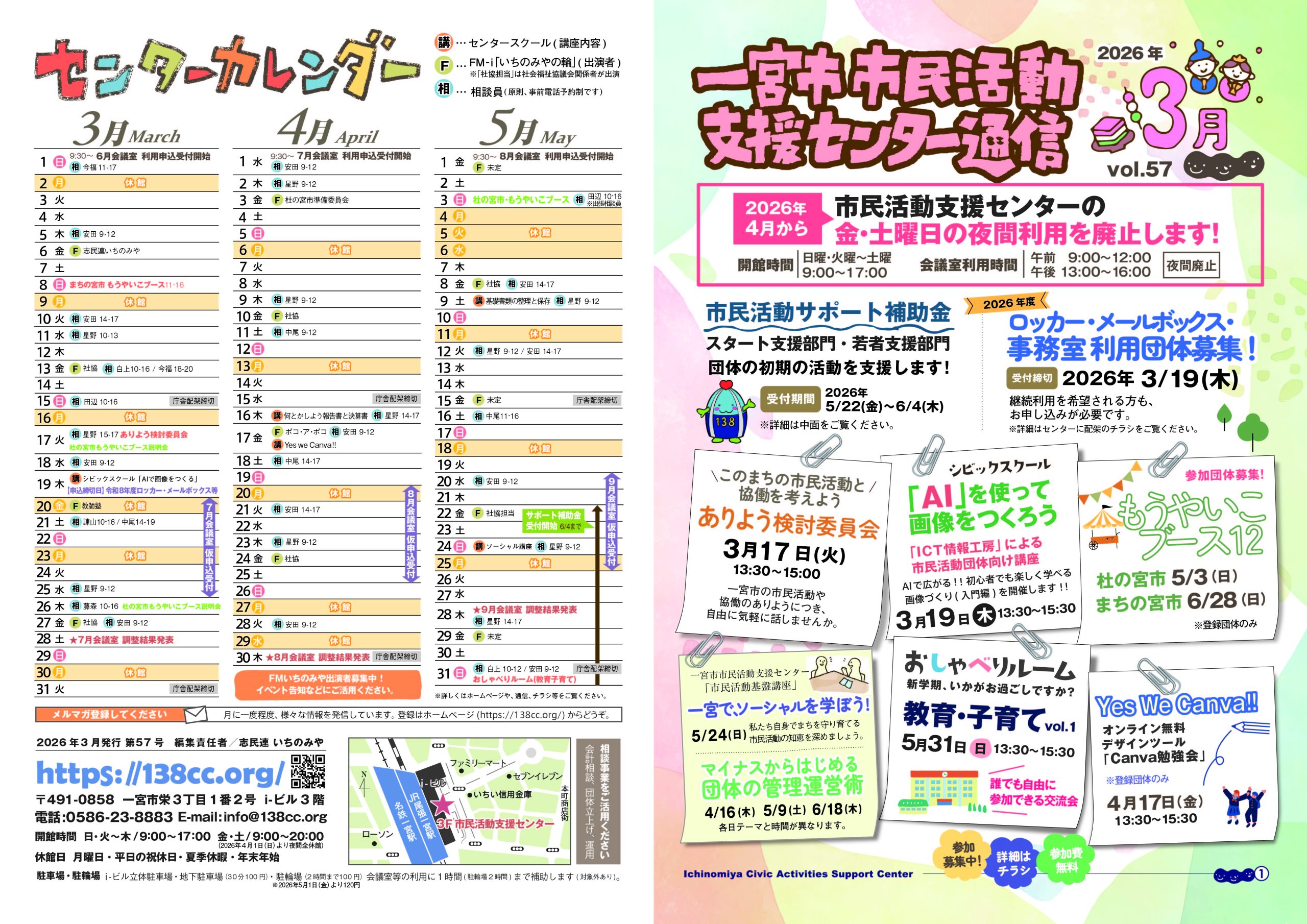 一宮市市民活動支援センター通信Vol.57(2026.3月号)