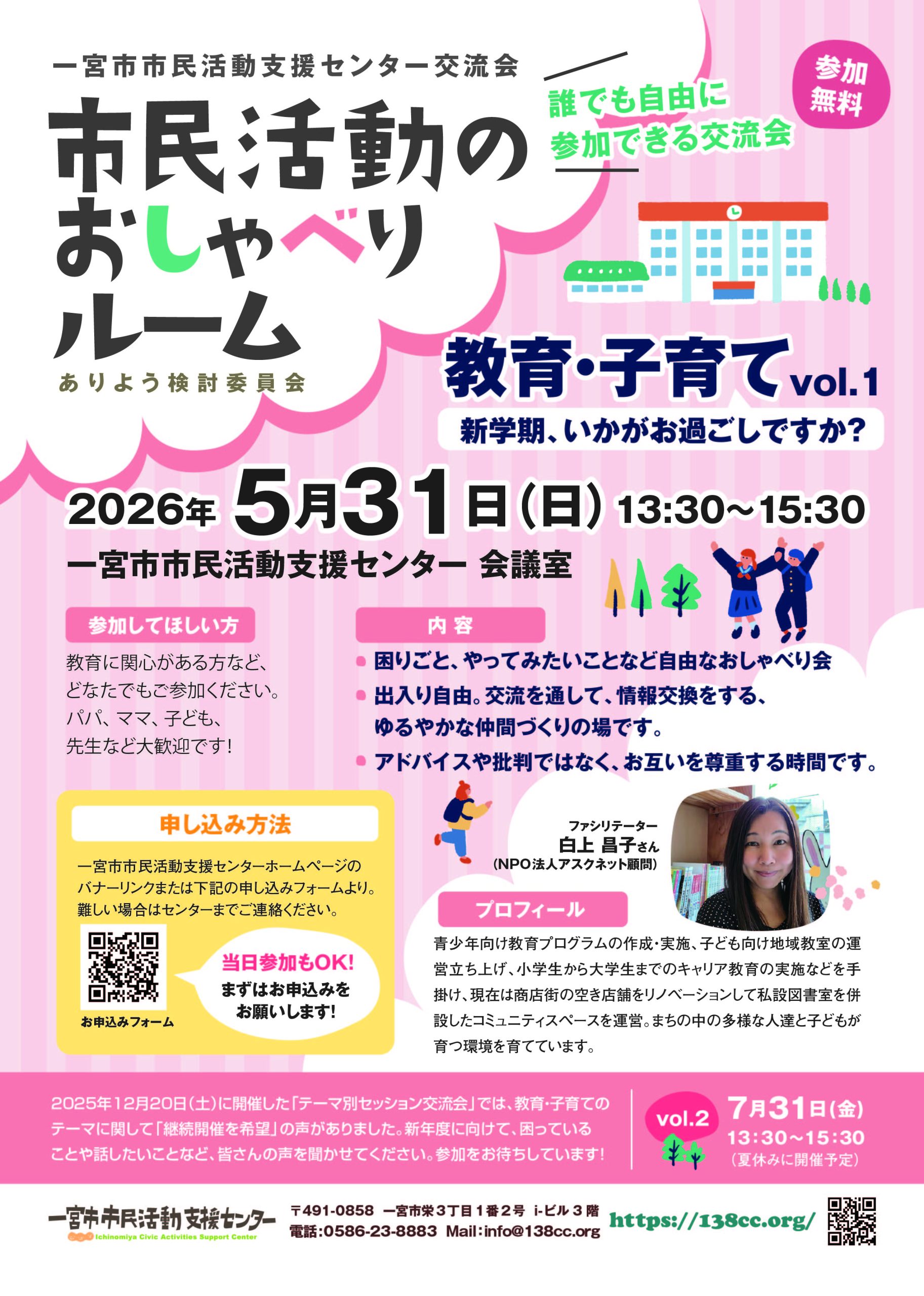 市民活動のおしゃべりルーム 教育・子育て vol.1