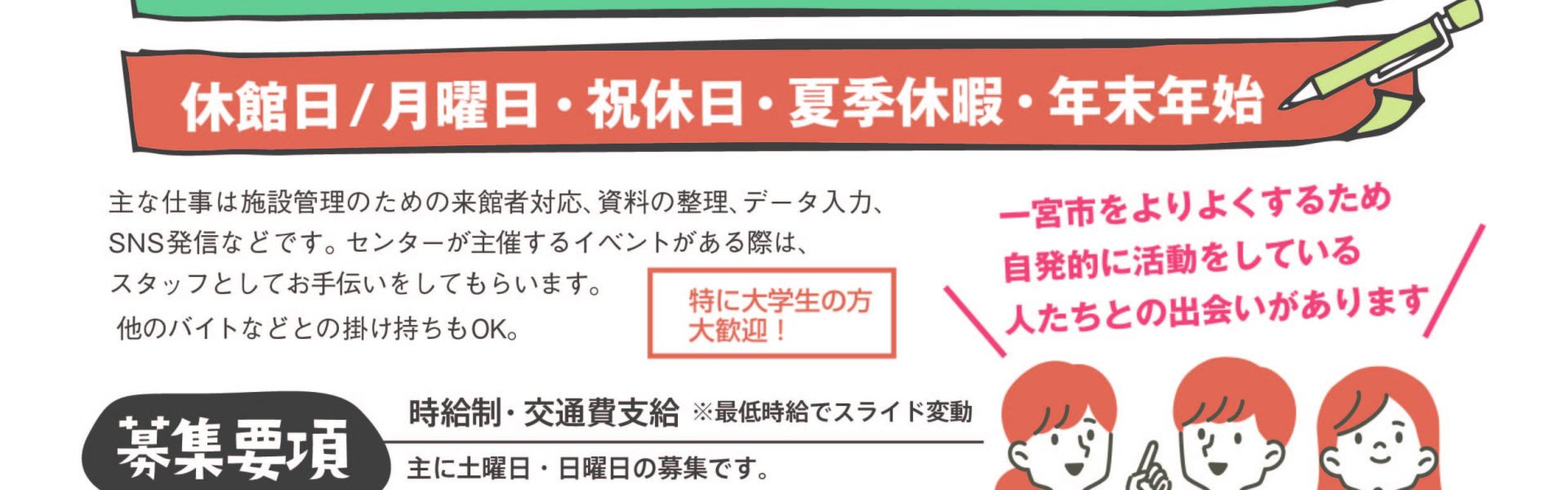 土曜日、日曜日に、一宮市市民活動支援センターの運営に参加しませんか