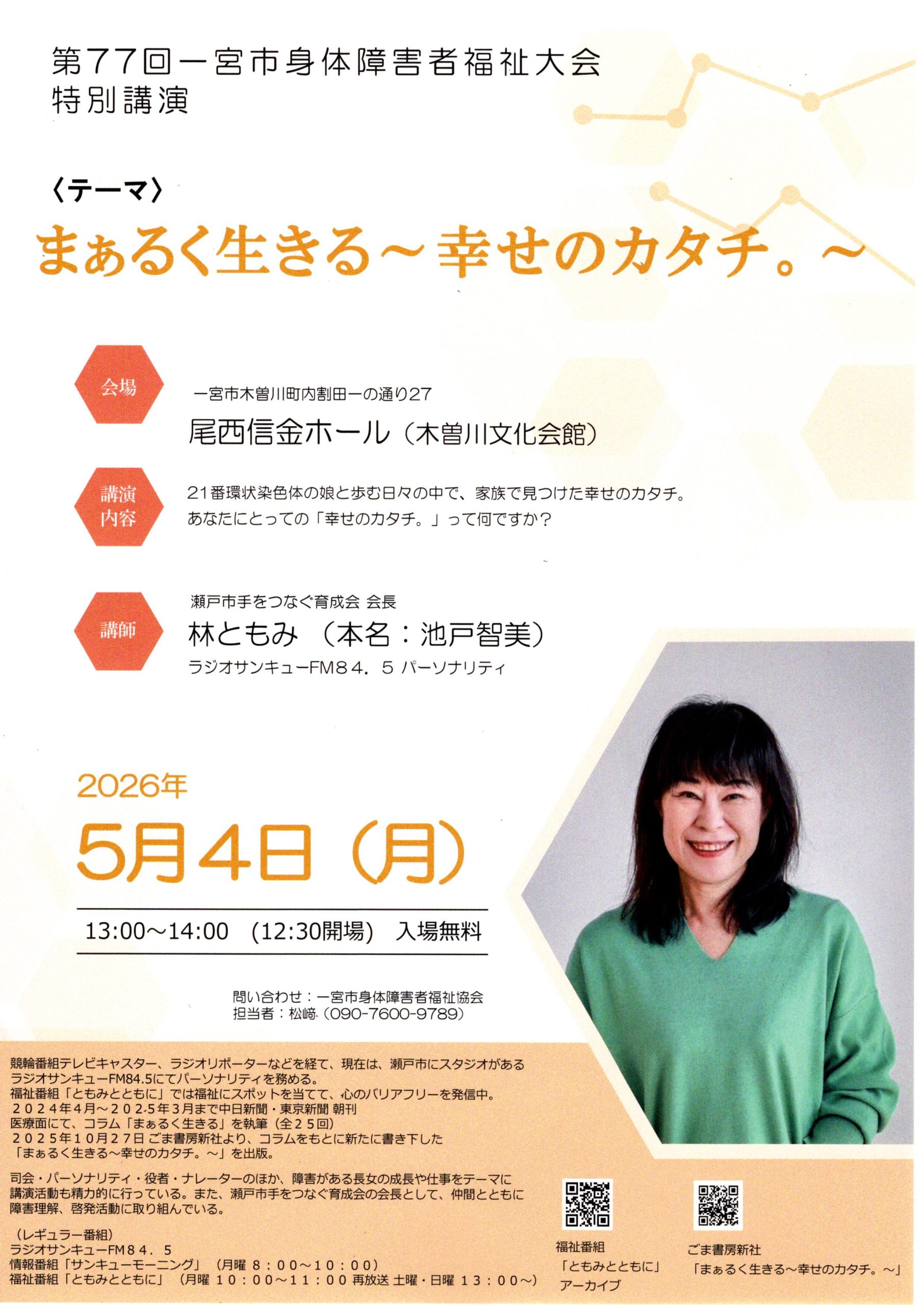 (登録団体からのお知らせ)第77回 一宮市身体障害者福祉大会特別講演【一宮市身体障害者福祉協会】